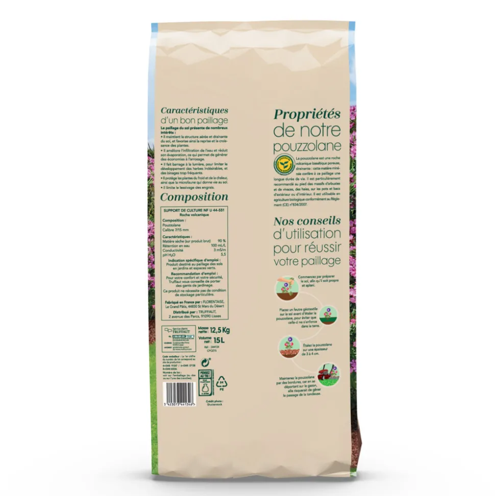Constitue une bonne protection contre la sécheresse (diminution de l’évaporation et maintien de la fraîcheur) et limite le désherbage.Protège le sol contre le froid.Possède un bon pouvoir drainant en mélange avec du terreau (container 2L).Epaisseur d’utilisation : 5 cm ou plus