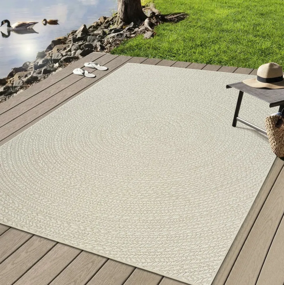 tapis extérieur intérieur rond Ø80 LYN13 REZY aspect jute motif rond ton sur ton par Un Amour de tapis.