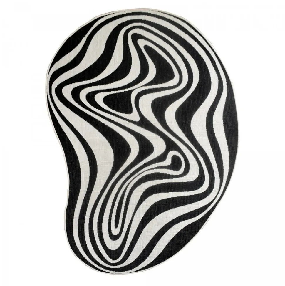 tapis rond d’extérieur, kilim reversible 160×230 AL REVERSIBLE noir et blanc par Un Amour de tapis.