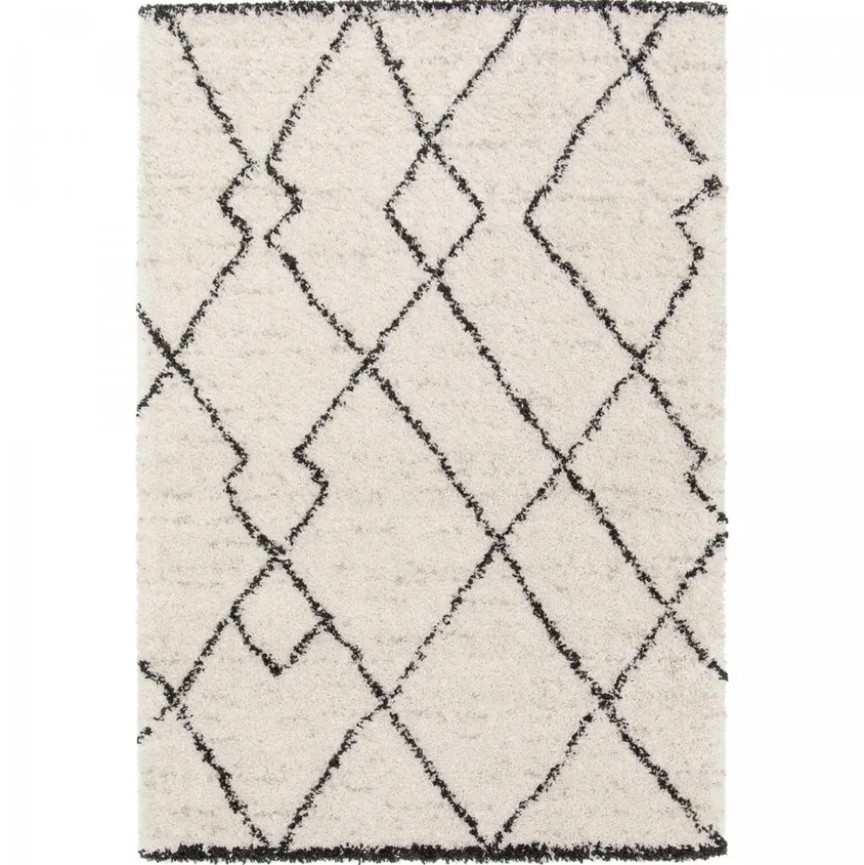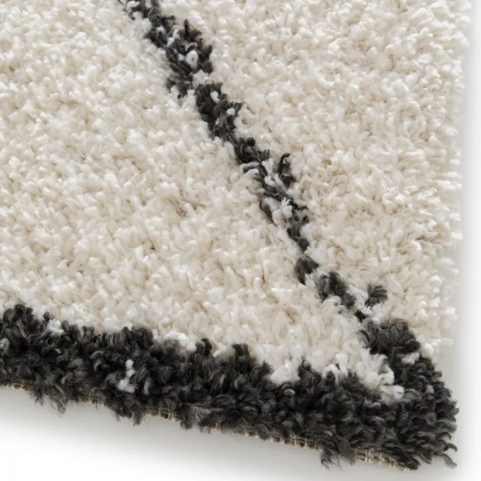 tapis shaggy 80×150 rectangle tissé noir et crème motif berbère CROMA 12 par Un Amour de tapis.