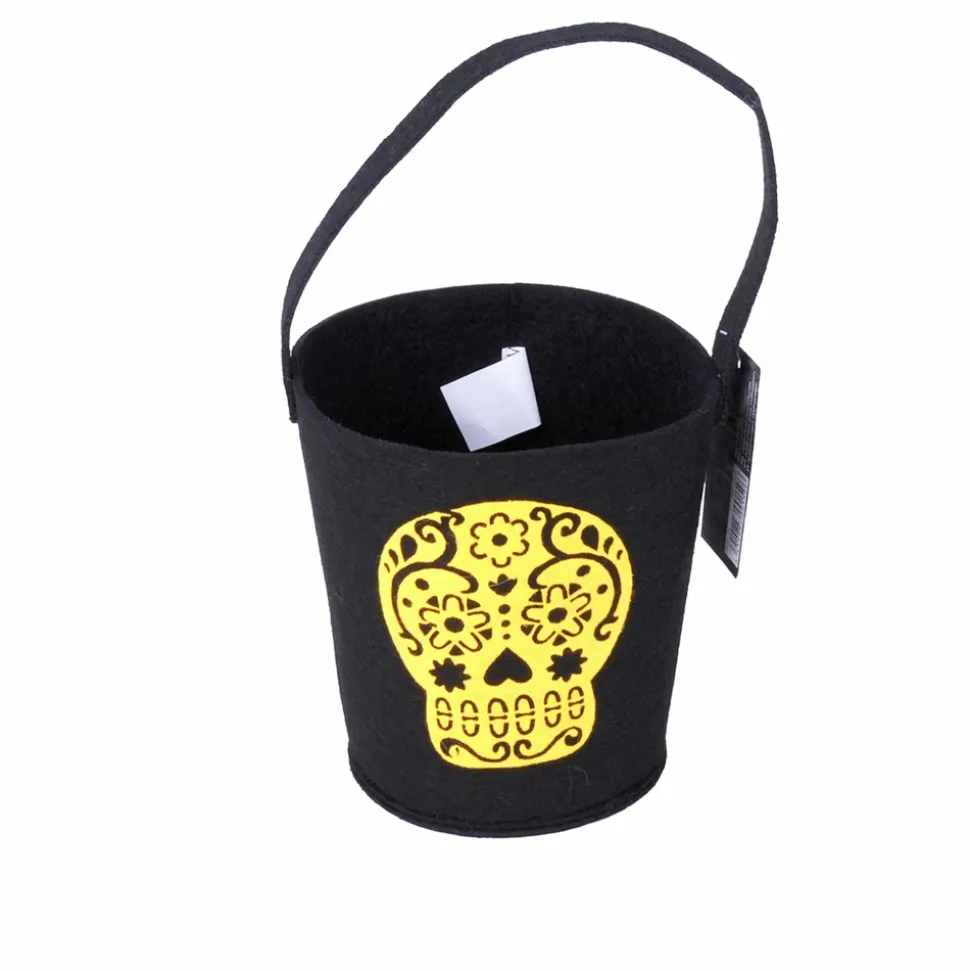 Partez à la chasse aux bonbons d’Halloween avec ce seau à tête de squelette.