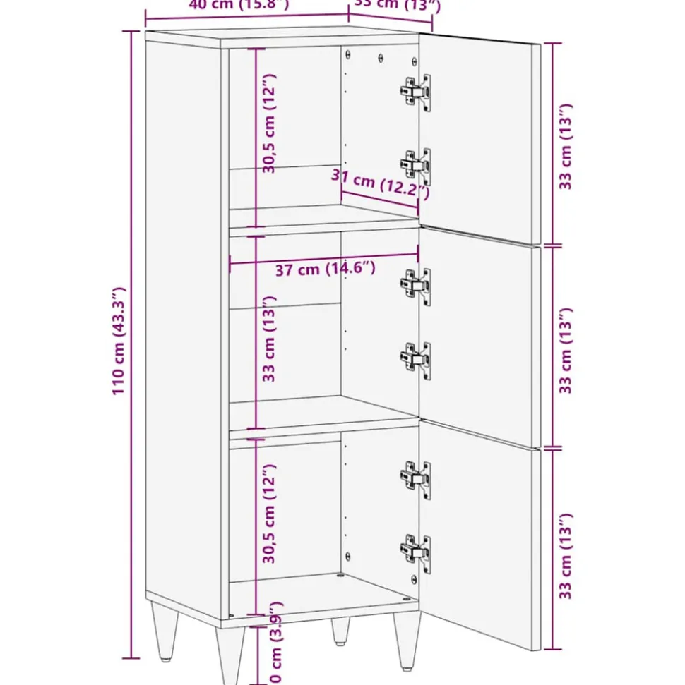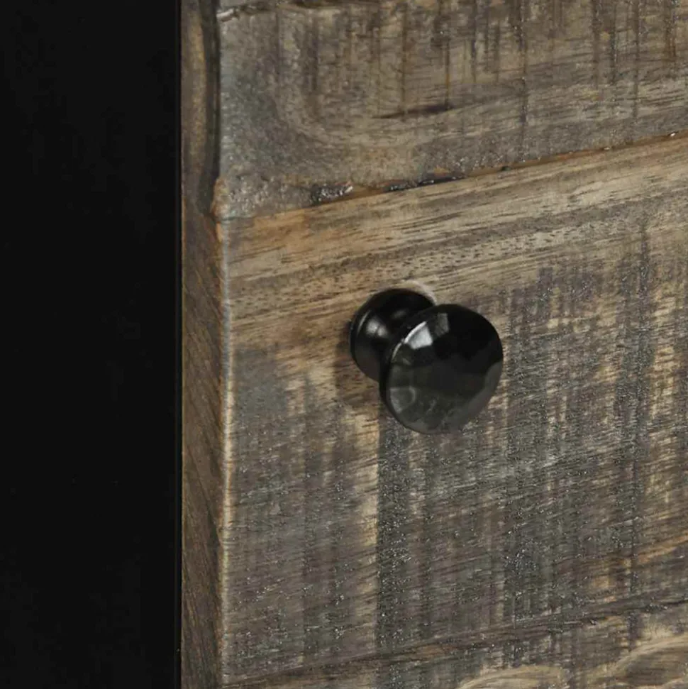 Ce buffet en bois offre à la fois un attrait décoratif et un rangement pratique, ce qui en fait un complément idéal pour votre maison. Matériau robuste et stable : le bois de manguier massif, un bois dur tropical robuste, est très apprécié pour la fabrication de meubles en raison de sa durabilité et de sa solidité exceptionnelles. Ses beaux grains de bois rendent chaque meuble unique et légèrement différent de l’autre.Grand espace de rangement : le buffet offre un grand espace de rangement pour les essentiels de la salle à manger et autres articles ménagers afin de les garder organisés et à portée de main.Motif sculpté à la main : le motif délicatement sculpté donne au buffet un aspect unique.Dessus de table robuste : le buffet est doté d’un plateau robuste sur lequel vous pouvez placer vos objets de décoration, vos albums photos ou vos petites plantes.Multifonctionnel : vous pouvez utiliser ce buffet dans une chambre ou un salon, ou simplement comme armoire de rangement élégante dans les salles d’eau, les entrées, les couloirs et les bureaux, les salles à manger et autres espaces de vie. Bon à savoir :Chaque article est unique, avec des variations de couleurs et de grains. La livraison est aléatoire, ce qui garantit l’exclusivité et l’individualité de votre produit. Attention :Pour éviter qu’il ne bascule, ce produit doit être utilisé avec le dispositif de fixation murale fourni.