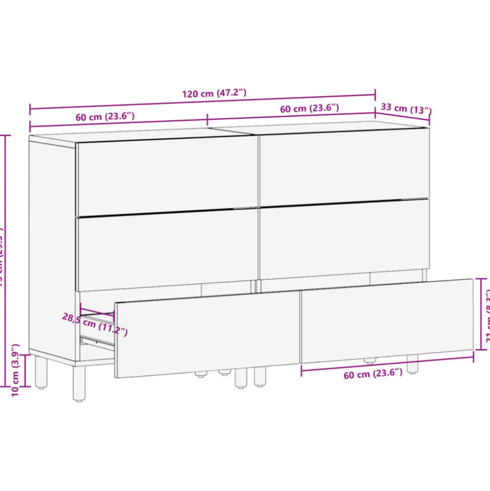- Dimensions totales (chacun) : 60 x 33 x 75 cm (l x P x H)