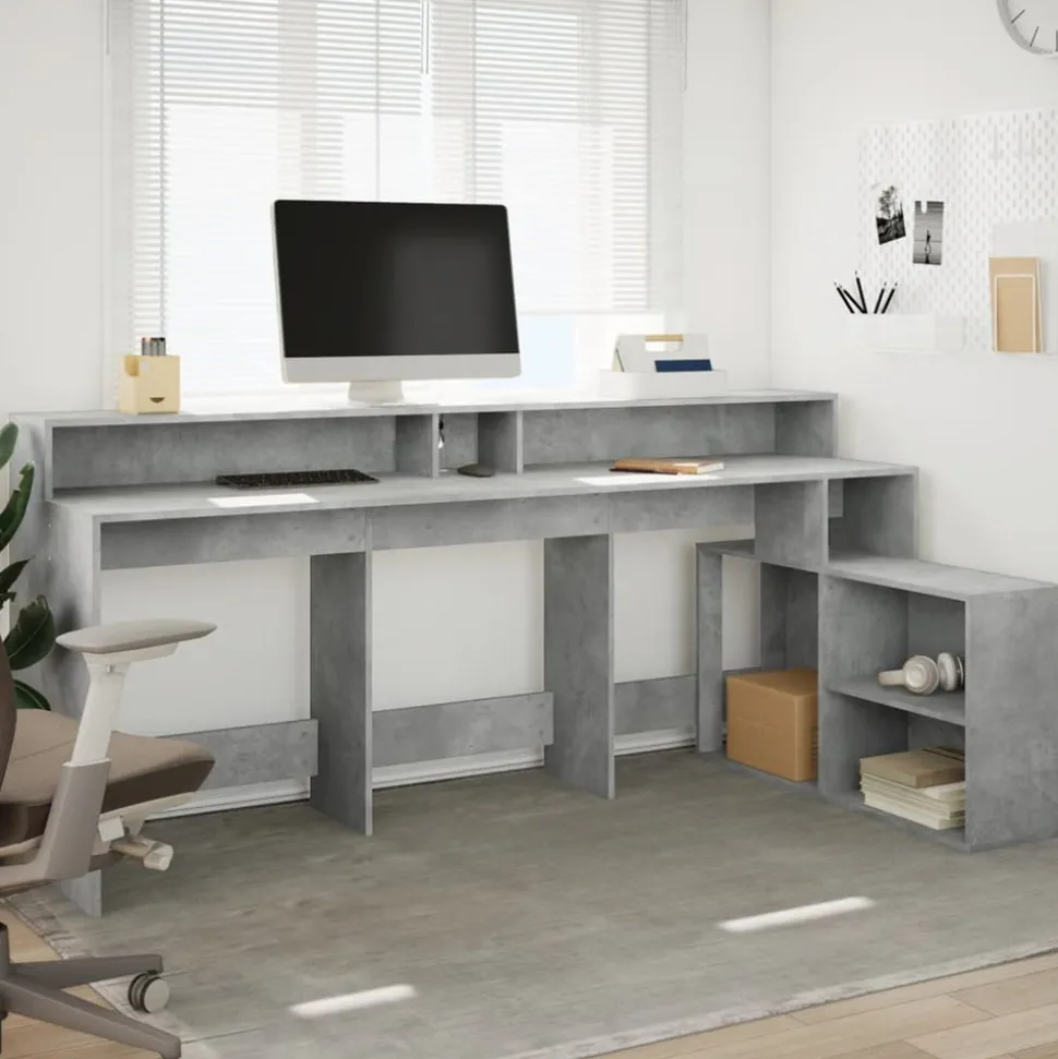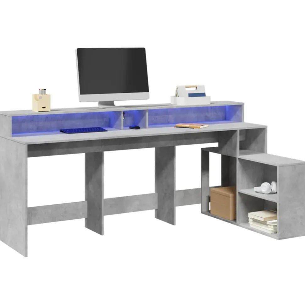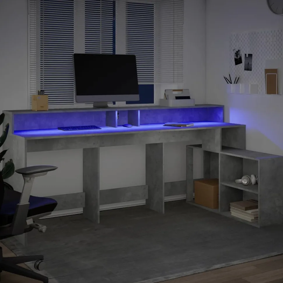 Avec un grand espace de rangement, une construction durable et des options d’éclairage LED, ce bureau est parfait pour créer un espace de travail ou de jeu organisé et élégant. Matériau stable et durable : le bois d’ingénierie est un matériau durable et stable dont la surface lisse résiste à l’humidité, à la déformation et au fendillement, ce qui en fait un choix fiable pour divers projets.Lampes LED RVB pour une ambiance agréable : ce bureau est équipé de lampes LED qui peuvent être facilement réglées pour créer un spectacle lumineux personnalisé. Vous pouvez personnaliser les modes, les couleurs et la luminosité pour améliorer l’ambiance de votre espace intérieur.Grand espace de rangement : le bureau comprend des compartiments et des étagères ouverts, offrant de nombreuses options de rangement pour tous vos articles de bureau et vous aidant à garder votre espace de travail organisé et sans encombrement. De plus, le bureau LED est doté d’un trou spécial pour la gestion des câbles, garantissant que votre bureau reste bien rangé.Entretien facile : grâce à sa surface lisse, le bureau LED est facile à nettoyer avec un chiffon sec et doux et nécessite moins d’entretien. Veuillez débrancher le produit de l’alimentation électrique ou éteindre l’alimentation électrique lorsqu’il n’est pas utilisé et lors du nettoyage. Attention :Pour éviter qu’il ne bascule, ce produit doit être utilisé avec le dispositif de fixation murale fourni. Bon à savoir :Les vis et les chevilles pour l’intérieur du mur ne sont pas incluses. Nous vous conseillons de trouver et d’utiliser des vis et des chevilles adaptées spécifiquement à vos murs. Si vous n’êtes pas sûr, vous pouvez consulter un professionnel. Veuillez lire et suivre chaque étape des instructions.Ce produit est doté d’un connecteur USB qui nécessite une source d’alimentation USB de 5V certifiée (non incluse).