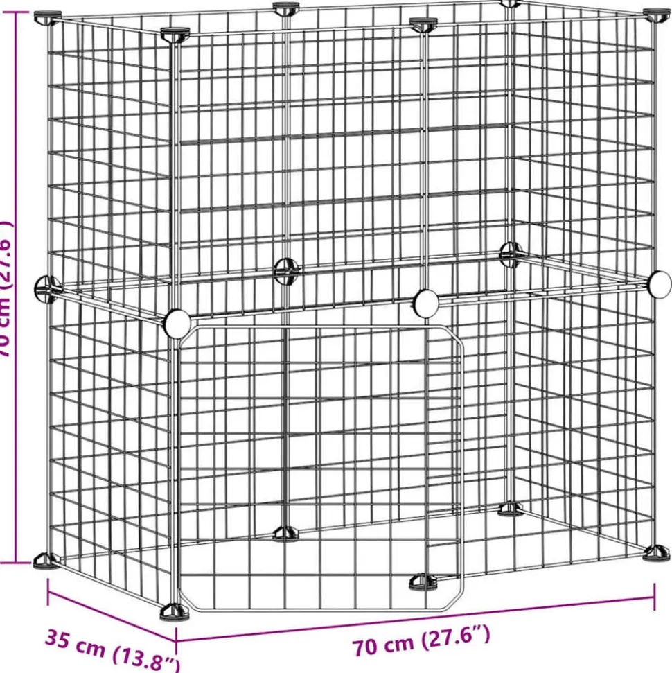Cette cage pour animaux de compagnie offre un espace clos spacieux et sûr pour que vos adorables animaux de compagnie puissent faire de l’exercice, jouer et se reposer. Matériau robuste : la cage pour animaux est fabriquée en acier enduit de poudre, robuste et durable, garantissant des années d’utilisation avec peu d’entretien.Montage facile : la cage comprend plusieurs panneaux, ce qui vous permet de l’assembler selon la forme et la taille que vous souhaitez.Espace spacieux : la cage pour animaux offre beaucoup d’espace pour que vos animaux de compagnie puissent jouer et se reposer tout en restant en sécurité dans les limites.Porte pratique : la cage pour animaux de compagnie dispose également d’une porte pratique, ce qui rend les soins à vos animaux de compagnie beaucoup plus commodes. Remarque : Chaque produit est livré avec un manuel de montage dans la boîte pour un montage facile.