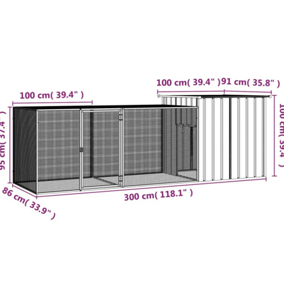 Cette cage pour poulets, en acier galvanisé, peut garder vos poulets, poules, canards et autres petits animaux à l’aise et en sécurité. Poulailler tout-en-un : le poulailler offre de multiples utilisations : se reposer, jouer, faire de l’exercice ou simplement garder vos petits animaux en sécurité. Ce sera un paradis parfait pour vos poules !Construction robuste : grâce à la construction robuste en acier galvanisé, le poulailler est durable et construit pour durer.Sécurité supplémentaire : la porte à charnière avec un système de verrouillage verrouillable du poulailler assure une sécurité supplémentaire à vos animaux.Design ventilé : le poulailler a un design en maille, ce qui le rend bien ventilé pour garder l’air frais et propre. Ainsi, le poulailler extérieur est bénéfique pour la santé de vos petits amis.Espace d’extension : avec la cage d’extension incluse, vous pouvez facilement créer un espace de vie spacieux pour que vos animaux de compagnie puissent jouer et se reposer librement dans l’enclos. Remarque :Chaque produit est livré avec un manuel de montage dans la boîte pour un montage facile. Couleur : grisMatériau : acier galvaniséDimensions totales : 300 x 91 x 100 cm (l x P x H)Dimensions de la porte : 46,5 x 74,5 cm (l x H)Dimensions de la cage d’extension : 100 x 90 x 90 cm (l x P x H)La livraison contient :1 x poulailler1 x cage d’extensionCouleur : grisMatériau : acier galvaniséDimensions totales : 300 x 91 x 100 cm (l x P x H)Dimensions de la porte : 46,5 x 74,5 cm (l x H)Dimensions de la cage d’extension : 100 x 90 x 90 cm (l x P x H)La livraison contient :1 x poulailler1 x cage d’extension