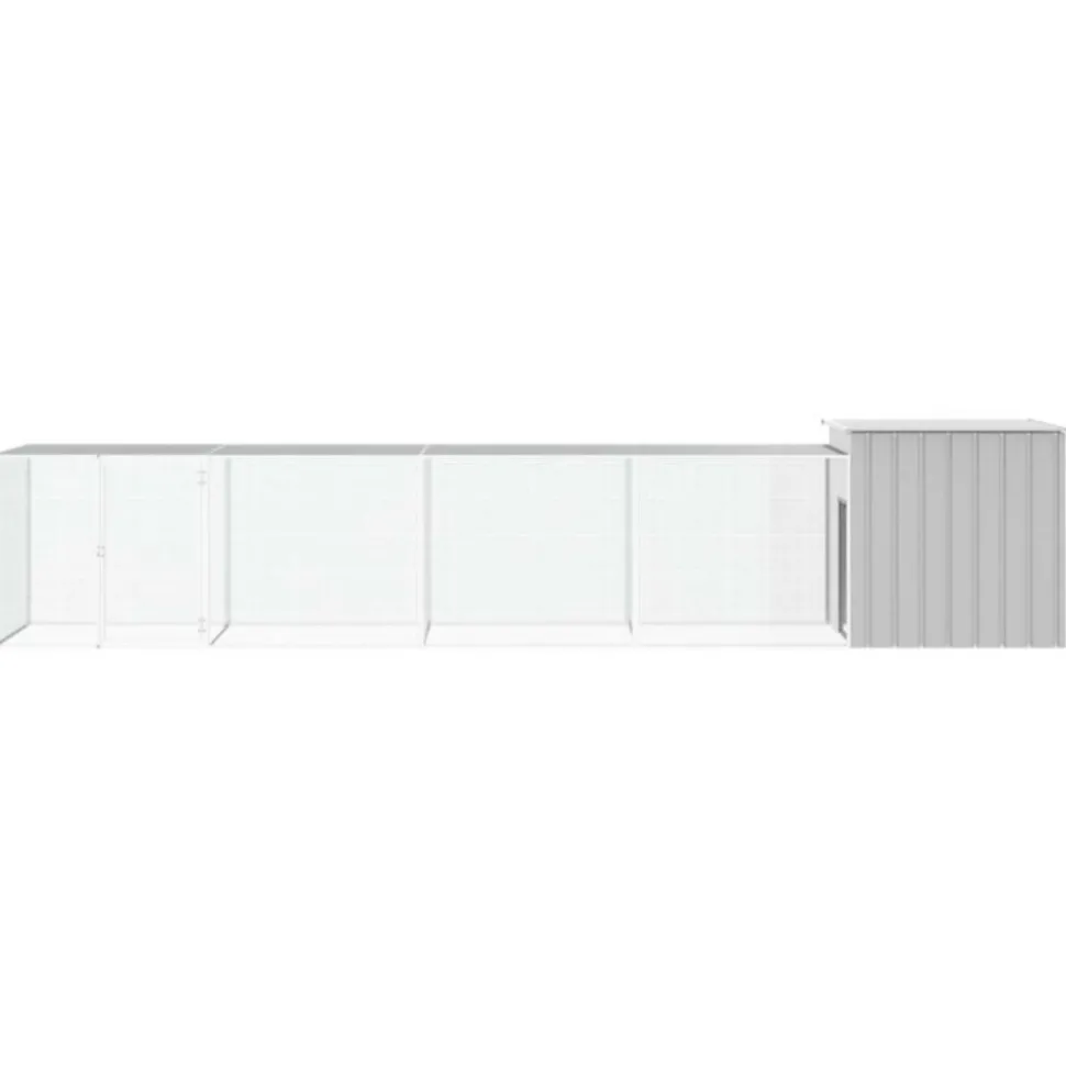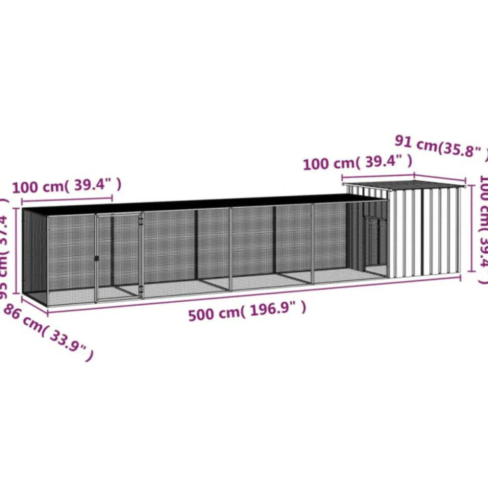 Cette cage pour poulets, en acier galvanisé, peut garder vos poulets, poules, canards et autres petits animaux à l’aise et en sécurité. Poulailler tout-en-un : le poulailler offre de multiples utilisations : se reposer, jouer, faire de l’exercice ou simplement garder vos petits animaux en sécurité. Ce sera un paradis parfait pour vos poules !Construction robuste : grâce à la construction robuste en acier galvanisé, le poulailler est durable et construit pour durer.Sécurité supplémentaire : la porte à charnière avec un système de verrouillage verrouillable du poulailler assure une sécurité supplémentaire à vos animaux.Design ventilé : le poulailler a un design en maille, ce qui le rend bien ventilé pour garder l’air frais et propre. Ainsi, le poulailler extérieur est bénéfique pour la santé de vos petits amis.Espace d’extension : avec la cage d’extension incluse, vous pouvez facilement créer un espace de vie spacieux pour que vos animaux de compagnie puissent jouer et se reposer librement dans l’enclos. Remarque :Chaque produit est livré avec un manuel de montage dans la boîte pour un montage facile. Couleur : grisMatériau : acier galvaniséDimensions totales : 500 x 91 x 100 cm (l x P x H)Dimensions de la porte : 46,5 x 74,5 cm (l x H)Dimensions de la cage d’extension (chacune) : 100 x 90 x 90 cm (l x P x H)La livraison contient :1 x poulailler3 x cage d’extensionCouleur : grisMatériau : acier galvaniséDimensions totales : 500 x 91 x 100 cm (l x P x H)Dimensions de la porte : 46,5 x 74,5 cm (l x H)Dimensions de la cage d’extension (chacune) : 100 x 90 x 90 cm (l x P x H)La livraison contient :1 x poulailler3 x cage d’extension