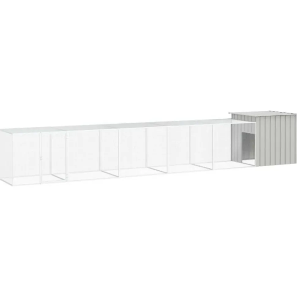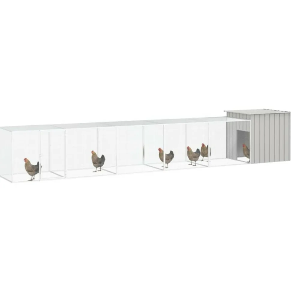 Cette cage pour poulets, en acier galvanisé, peut garder vos poulets, poules, canards et autres petits animaux à l’aise et en sécurité. Poulailler tout-en-un : le poulailler offre de multiples utilisations : se reposer, jouer, faire de l’exercice ou simplement garder vos petits animaux en sécurité. Ce sera un paradis parfait pour vos poules !Construction robuste : grâce à la construction robuste en acier galvanisé, le poulailler est durable et construit pour durer.Sécurité supplémentaire : la porte à charnière avec un système de verrouillage verrouillable du poulailler assure une sécurité supplémentaire à vos animaux.Design ventilé : le poulailler a un design en maille, ce qui le rend bien ventilé pour garder l’air frais et propre. Ainsi, le poulailler extérieur est bénéfique pour la santé de vos petits amis.Espace d’extension : avec la cage d’extension incluse, vous pouvez facilement créer un espace de vie spacieux pour que vos animaux de compagnie puissent jouer et se reposer librement dans l’enclos. Remarque :Chaque produit est livré avec un manuel de montage dans la boîte pour un montage facile. Couleur : grisMatériau : acier galvaniséDimensions totales : 600 x 91 x 100 cm (l x P x H)Dimensions de la porte : 46,5 x 74,5 cm (l x H)Dimensions de la cage d’extension (chacune) : 100 x 90 x 90 cm (l x P x H)La livraison contient :1 x poulailler4 x cage d’extensionCouleur : grisMatériau : acier galvaniséDimensions totales : 600 x 91 x 100 cm (l x P x H)Dimensions de la porte : 46,5 x 74,5 cm (l x H)Dimensions de la cage d’extension (chacune) : 100 x 90 x 90 cm (l x P x H)La livraison contient :1 x poulailler4 x cage d’extension