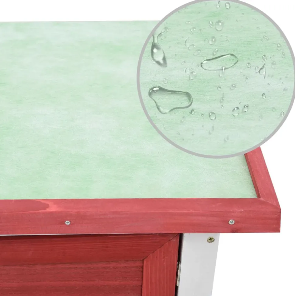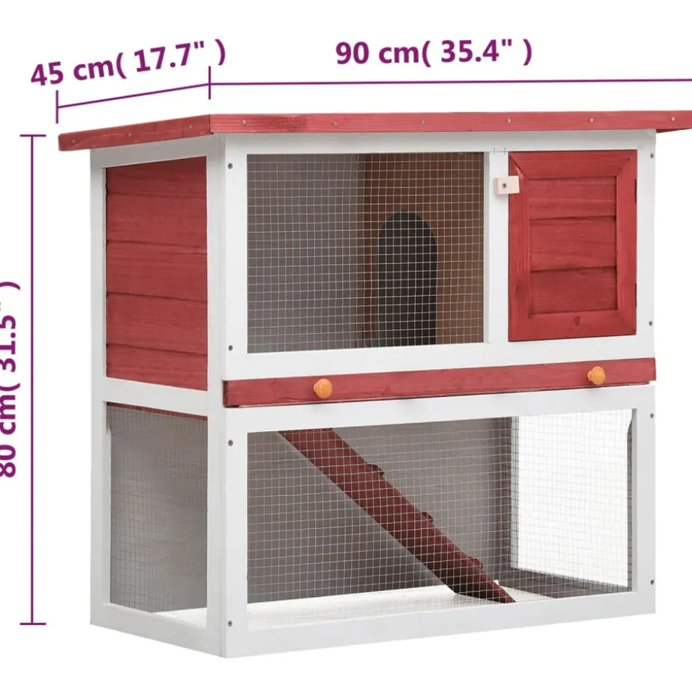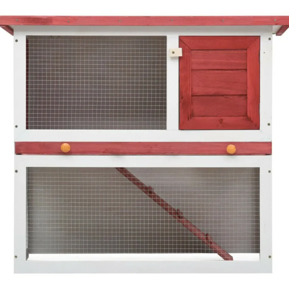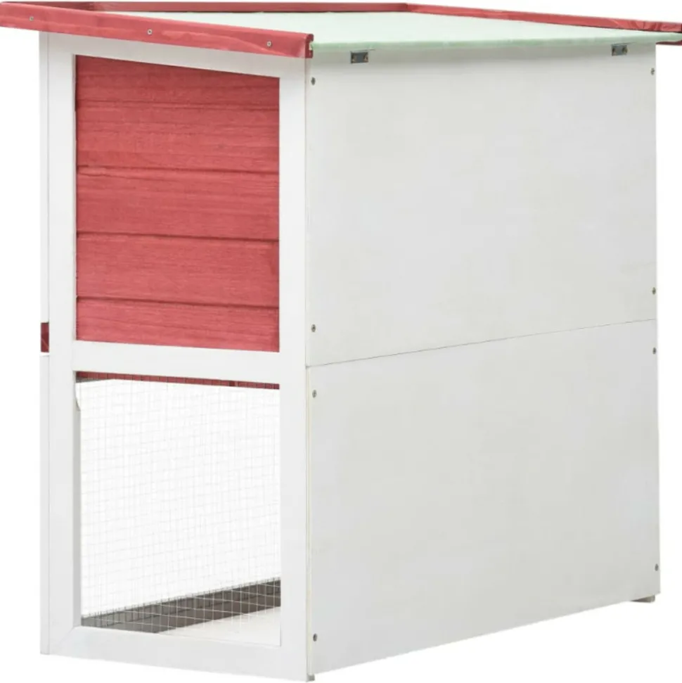 Ce clapier de qualité fournit un grand endroit confortable pour garder des petits animaux, particulièrement les lapins mignons. Il a plusieurs usages : jouer, faire de l’exercice, s’entraîner ou simplement garder vos animaux en toute sécurité. Ce clapier offre à vos animaux de compagnie beaucoup d’espace d’exercice tandis que le treillis de fer serré aide à prévenir les comportements espiègles et les accidents inattendus. La construction du treillis de fer assure votre surveillance des animaux de compagnie et permet à vos animaux de compagnie de garder un œil sur les environs et d’avoir assez d’air frais. Le clapier est construit avec un cadre en bois de haute qualité, ce qui en fait un enclos solide et sûr qui dure des années. Son toit vert empêche la pluie de s’y infiltrer tandis que le confortable enclos fait le quart de sommeil parfait. Le toit supérieur peut être ouvert pour attraper ou libérer vos animaux de compagnie. Une rampe facile d’escalade mène du niveau du sol inférieur à l’étage. Un plateau coulissant facilite le nettoyage. La porte se ferme facilement et se verrouille avec un loquet à glissière. Cet enclos en bois est parfait pour les petits animaux domestiques. Remarque importante : nous vous recommandons de placer le clapier sous un abri. En conséquence, cela durera plus longtemps. Disposition spacieuseCouleur : Rouge et blancTaille totale : 90 x 45 x 80 cm (L x l x H)Taille de la porte : 25 x 28 cm (l x H)Taille du plateau coulissant : 83 x 38 x 5 cm (l x P x H)Cadre en bois de sapin massif avec finition peinte, contreplaquéTreillis métallique en fer enduit de poudre durableProtection contre l’humidité grâce au toit étanche vertAvec une rampe antidérapante pour faciliter l’accès au niveau supérieurUn plateau coulissant pour un nettoyage facileRésistance aux intempériesFacile à assemblerConvient aux lapinsDimensions intérieures : 38 x 77 x 77,5 cm (l x P x H)Disposition spacieuseCouleur : Rouge et blancTaille totale : 90 x 45 x 80 cm (L x l x H)Taille de la porte : 25 x 28 cm (l x H)Taille du plateau coulissant : 83 x 38 x 5 cm (l x P x H)Cadre en bois de sapin massif avec finition peinte, contreplaquéTreillis métallique en fer enduit de poudre durableProtection contre l’humidité grâce au toit étanche vertAvec une rampe antidérapante pour faciliter l’accès au niveau supérieurUn plateau coulissant pour un nettoyage facileRésistance aux intempériesFacile à assemblerConvient aux lapinsDimensions intérieures : 38 x 77 x 77,5 cm (l x P x H)