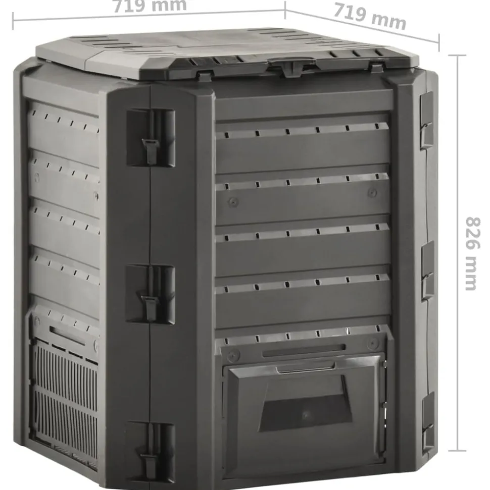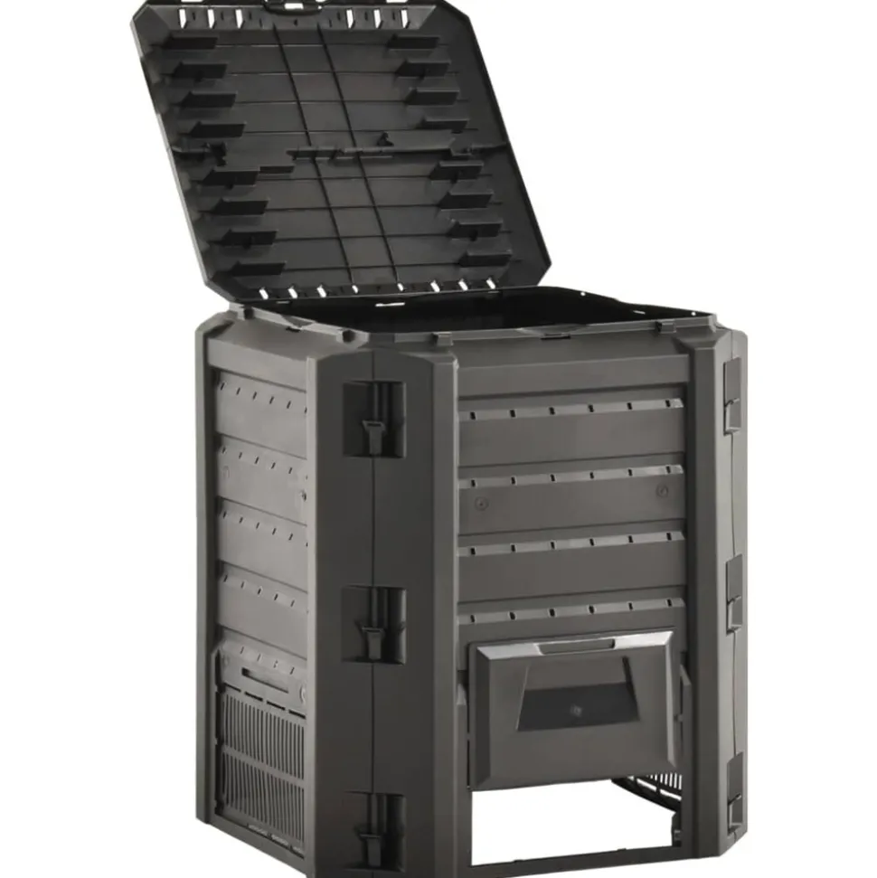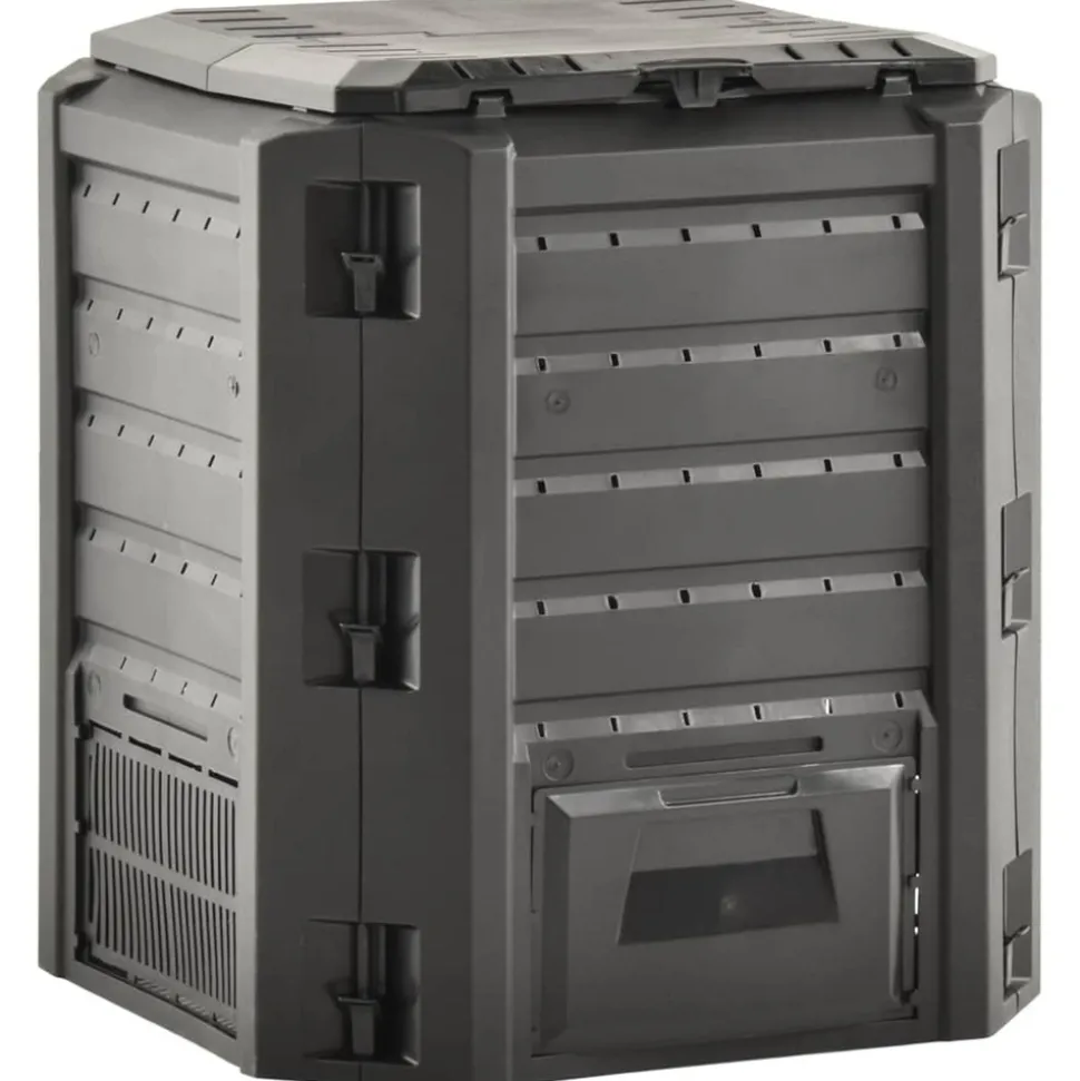 Ce bac à compost de jardin résistant aux intempéries aide à accélérer la décomposition de la matière organique et à préparer vous-même l’engrais. Le convertisseur de déchets convient aux déchets de jardin et de cuisine. Le développement de chaleur élevée à l’intérieur de l’unité de compostage favorise une décomposition bactérienne plus rapide et produit un meilleur humus. Doté d’un design compact, le composteur de jardin prend peu de place, mais offre un grand volume. Le couvercle sur le dessus vous permet de le remplir facilement par le dessus, et le rabat assure un retrait simple de l’humus. Vous pouvez installer ce composteur sans outils supplémentaires.