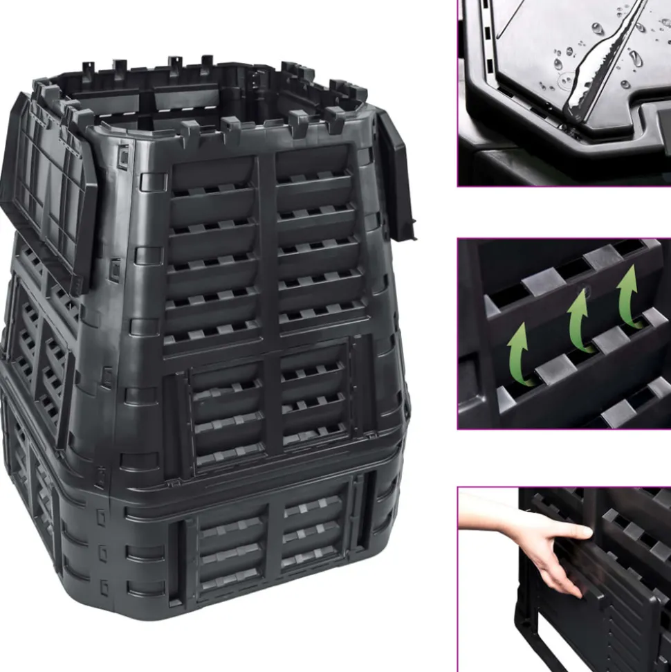 Ce bac à compost de jardin résistant aux intempéries aide à accélérer la décomposition de la matière organique et à préparer vous-même l’engrais. Le convertisseur de déchets convient aux déchets de jardin et de cuisine. Le développement de chaleur élevée à l’intérieur de l’unité de compostage favorise une décomposition bactérienne plus rapide et produit un meilleur humus. Doté d’un design compact, le composteur de jardin prend peu de place, mais offre un grand volume. Les couvercles sur le dessus facilitent le remplissage par le haut. Et le rabat assure un retrait simple de l’humus. Le système d’irrigation goutte à goutte, trou de cadenas, verrous latéraux solides, charnières de trappe solides, poignée confortable et de grandes portes coulissants avec des supports confortables assurent tous son utilisation conviviale.