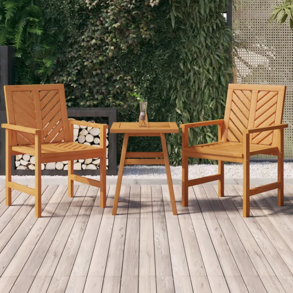 Cet ensemble de salon de jardin en bois avec des lattes avec motif à chevrons est un complément parfait à votre jardin et à votre terrasse, créant une impression durable ! Matériau durable : le bois d’acacia massif est un matériau naturel magnifique. Le bois d’acacia un bois dur tropical, qui est dense, robuste et durable.Cadre stable : le cadre en bois de l’ensemble de salon assure robustesse et stabilité.Assise confortable : la chaise de jardin est dotée d’accoudoirs et d’un dossier avec motif à chevrons pour vous offrir une expérience d’assise confortable.Large application : avec son design à chevrons, ce salon d’extérieur est idéal pour une utilisation à l’intérieur, dans un jardin, une cour, sur une pelouse, une cour, un balcon, dans un restaurant, etc.Design unique : avec un motif distinctif à lattes diagonales, l’ensemble de salon en bois attire l’attention de tous vos visiteurs. Bon à savoir :Pour faciliter au maximum le montage, chaque produit est livré avec des instructions. Remarque :Pour que vos meubles d’extérieur restent beaux, nous vous recommandons de les protéger avec une housse imperméable.