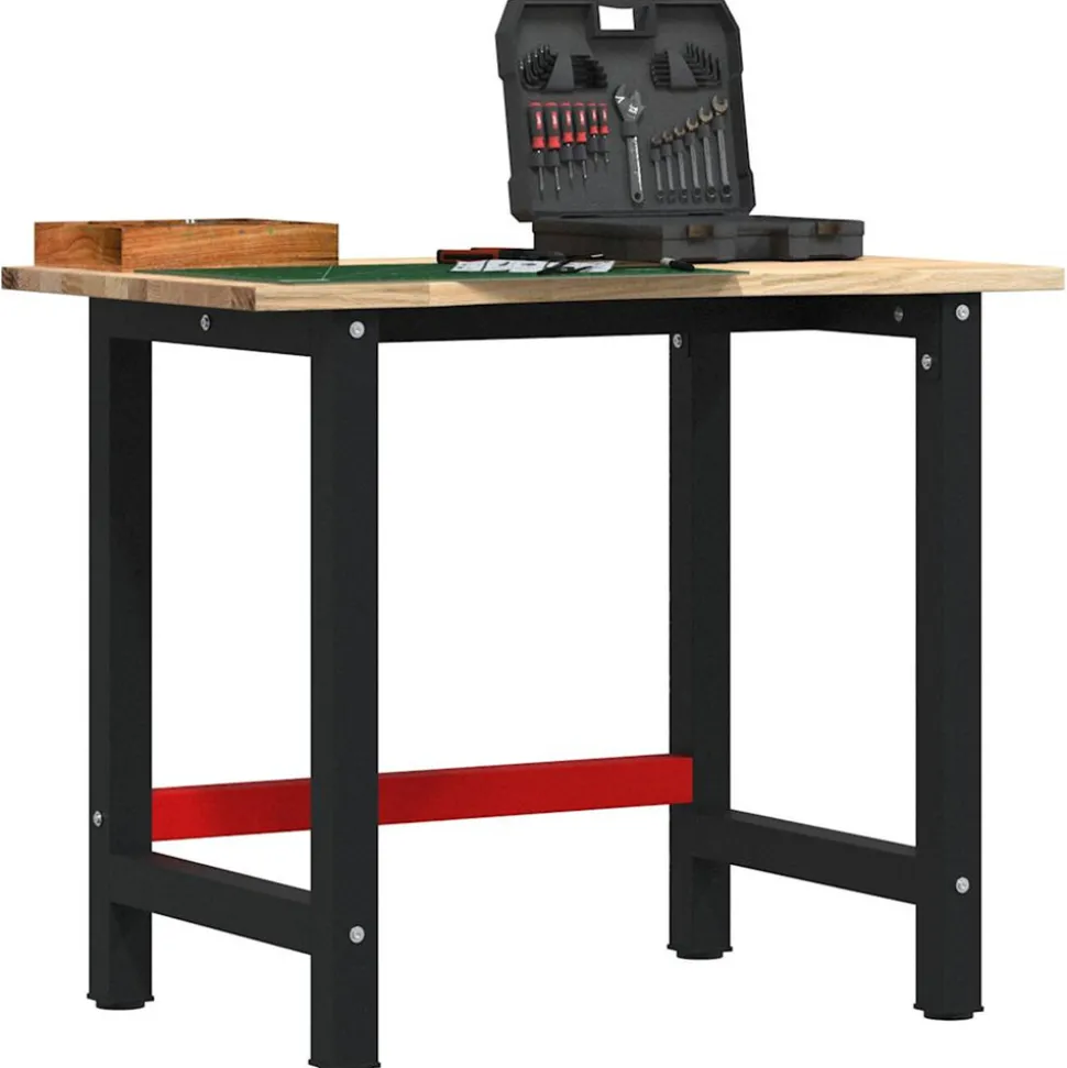 L’établi est une aide précieuse si vous souhaitez terminer des travaux de réparation ou réaliser vos rêves de bricolage ! Matériau robuste et stable : le bois de chêne massif est connu pour sa solidité, sa durabilité et la beauté de son grain, ce qui en fait un matériau idéal pour les meubles de longue durée. Sa résistance naturelle aux insectes et aux champignons permet aux meubles en chêne de rester attrayants et fonctionnels pendant des années.Cadre stable et durable : le cadre en métal enduit de poudre est solide, stable, durable et résistant à la corrosion et aux intempéries, ce qui garantit des performances durables.Grande surface de travail : la table de travail offre une grande surface de travail pour placer vos perceuses, tambours de câble et autres accessoires d’outillage.Utilisation polyvalente : doté d’un design simple et épuré, vous pouvez l’utiliser comme établi ou comme table de travail selon vos besoins. Le poste de travail est conçu pour être un meuble pratique et commode. Bon à savoir :Chaque article est unique, avec des variations de couleurs et de grains. La livraison est aléatoire, ce qui garantit l’exclusivité et l’individualité de votre produit.Nous recommandons d’utiliser un tournevis plutôt qu’une perceuse électrique pour éviter que le bois ne se fissure lors de la fixation des pieds. Attention :Ce dessus de table n’a pas de trous pré-percés et les vis ne sont pas incluses. Les trous doivent donc être pré-percés et les vis doivent être achetées avant d’assembler cette table de travail.