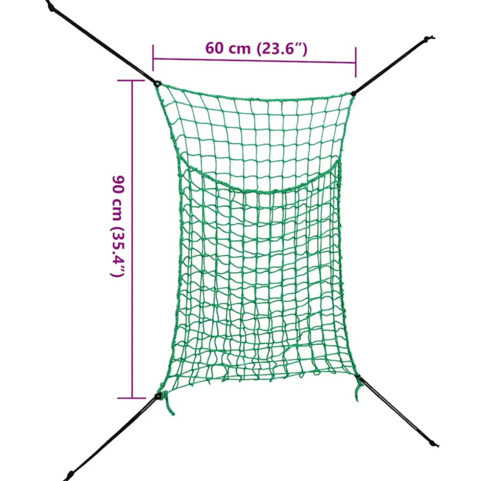 Cet ensemble de 2 filets à foin résistant est idéal pour garder la nourriture des cheveux ou des poneys. Le maillage finement tissé ralentit le rythme alimentaire des cheveux et améliore la digestion et aussi résulte en moins de gaspillage. La livraison comprend 2 filets à foin.