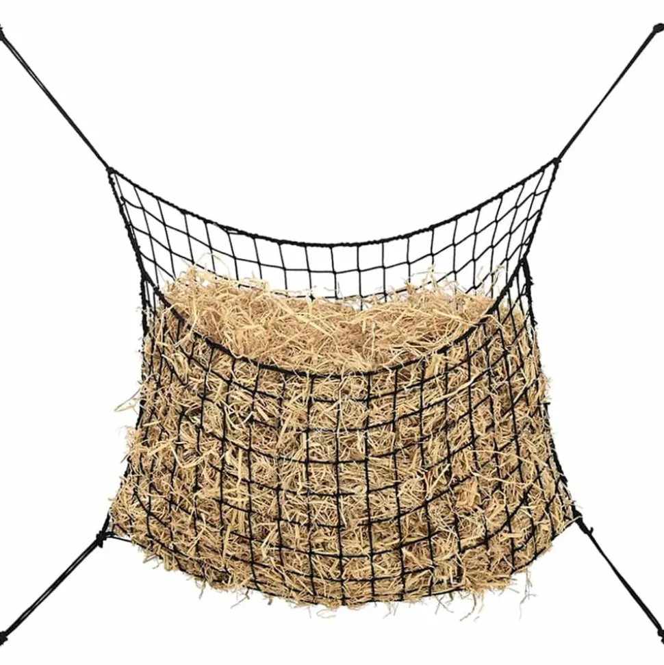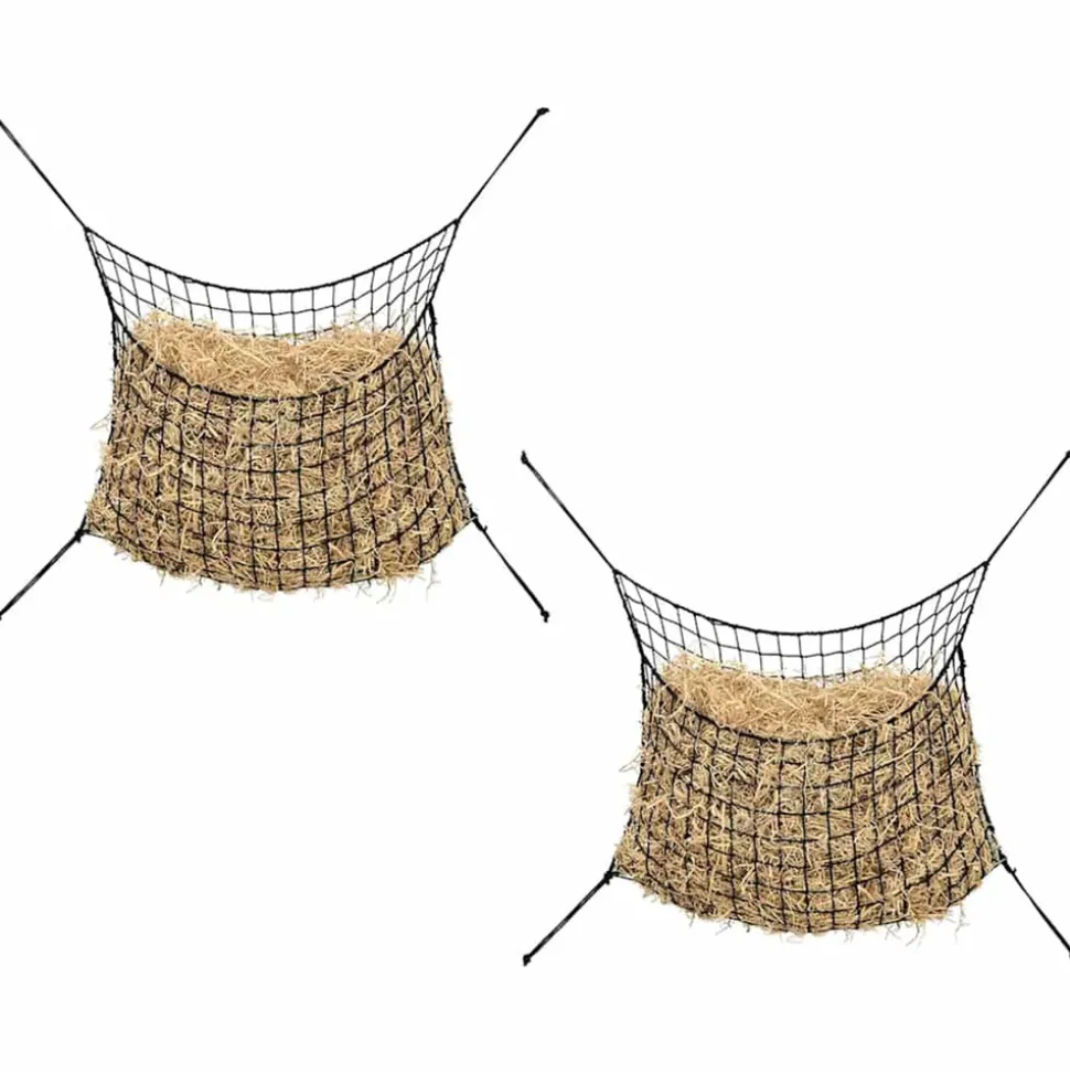 Cet ensemble de 2 filets à foin résistant est idéal pour garder la nourriture des cheveux ou des poneys. Pratique et fonctionnel : ce filet à foin permet de réguler le rythme alimentaire des chevaux, d’éviter qu’ils ne mangent trop et de favoriser une digestion saine.Réduction des déchets : le filet empêche le foin d’être piétiné ou dispersé, ce qui permet au cheval d’en consommer une plus grande quantité, réduisant ainsi considérablement les pertes de foin.Commodité : le filet à foin pour alimentation lente est pratique pour nourrir les animaux lorsque vous n’êtes pas à l’étable. Il permet de contenir le foin, d’éviter les dégâts et de faciliter l’alimentation en déplacement.Facile à transporter et à ranger : le filet à foin pour chevaux est pliable, facile à transporter et à ranger, et ne prend pas trop de place.