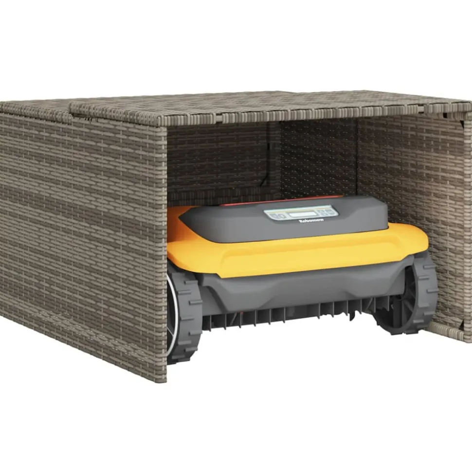 Ce garage pour robot tondeuse est le lieu de stationnement idéal pour stationner votre robot tondeuse de jardin lorsqu’il n’est pas utilisé. Matériau durable : la résine tressée, également connue sous le nom de poly rotin, est un matériau synthétique solide et nécessitant peu d’entretien qui ressemble au rotin naturel. Il est léger, facile à nettoyer et couramment utilisé pour les produits d’extérieur en raison de sa durabilité et de ses propriétés de résistance aux intempéries.Protection contre les intempéries : ce garage pour robot tondeuse offre une protection parfaite à votre robot de pelouse, en le protégeant des intempéries, notamment de la pluie, de la grêle et des rayons UV. De plus, grâce au design incliné du dessus, l’eau de pluie et la neige peuvent simplement s’écouler vers le bas.Multifonctionnel : que ce soit sur une pelouse, une surface pavée ou des fondations en béton, cet abri de rangement pour tondeuse à gazon peut être facilement placé sur n’importe quelle surface plane grâce aux accessoires de montage inclus.Cadre robuste et stable : le cadre en acier revêtu de poudre assure la robustesse et la stabilité du rangement d’extérieur pour la tondeuse à gazon.