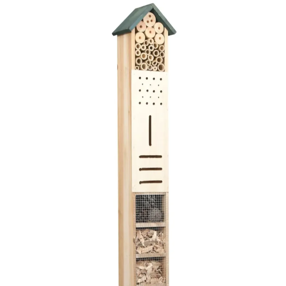 L’hôtel à insectes en bois est rempli de divers matériaux naturels choisis pour attirer les insectes bénéfiques dans votre jardin. Cette maison d’insectes est faite de bois de sapin massif, ce qui la rend stable et durable. Les cônes de pin naturels, les tiges de bambou creux et les copeaux de bois sont utilisés pour recréer un véritable habitat naturel et pour attirer différentes espèces comme les bourdons, les abeilles mellifères, les papillons et les coccinelles, et d’autres insectes respectueux de la nature pour aider à contrôler les ravageurs indésirables. Cet abri à insectes est une solution parfaite pour fournir un emplacement pour un large éventail d’insectes de jardin et d’abeilles.