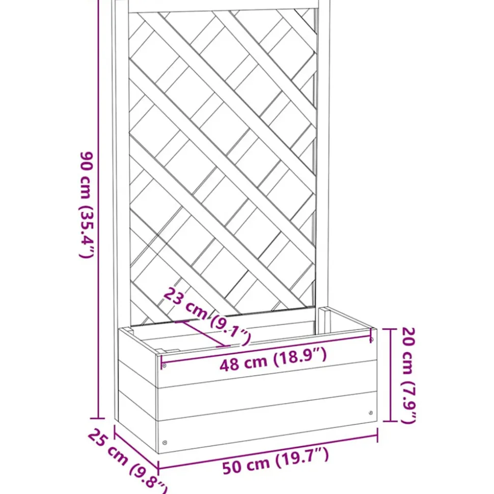 Cette solide jardinière à treillis de jardin est un moyen idéal pour cultiver un riche mélange de plantes et de fleurs. Elle est particulièrement adaptée aux plantes grimpantes avec treillis. Cette jardinière à treillis, fabriquée en bois de sapin massif, est robuste et convient à un usage extérieur. La jardinière a également une boîte à fleurs pour accueillir un grand nombre de plantes vertes et de fleurs. En outre, le treillis intégré offre un excellent support pour les plantes grimpantes.