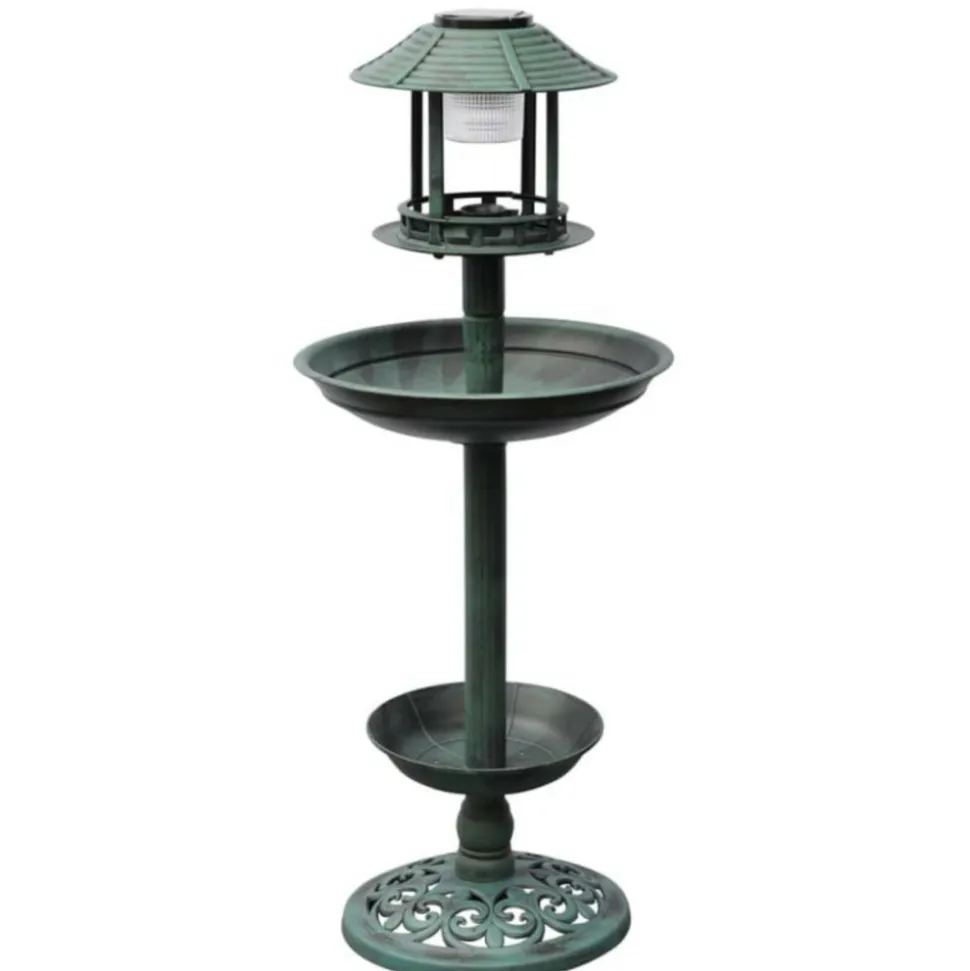 Ce bain d’oiseau décoratif sera un véritable accroche-regard pour votre jardin, balcon, terrasse, etc. Le plateau inférieur peut être utilisé pour faire pousser des plantes ou des fleurs, et ces plantes resteront sèches. Le grand bol au milieu peut être rempli d’eau pour que les oiseaux se baignent. Il dispose d’un panneau solaire intégré qui fournira une lumière douce pendant des heures la nuit. Cette décoration de jardin attrayante vous procurera sûrement, à vous et à vos oiseaux de jardin, des heures de plaisir. Couleur : vertMatériau : plastique résistant aux intempériesDimensions totales : 39 x 39 x 97 cm (l x P x H)Lampe LED : 2 x AA 1,2 V 700 mAh Ni-MhBatterie rechargeable : incluse Ce produit ne doit pas être éliminé avec les autres déchets ménagers dans l’Union européenne.Couleur : vertMatériau : plastique résistant aux intempériesDimensions totales : 39 x 39 x 97 cm (l x P x H)Lampe LED : 2 x AA 1,2 V 700 mAh Ni-MhBatterie rechargeable : incluse