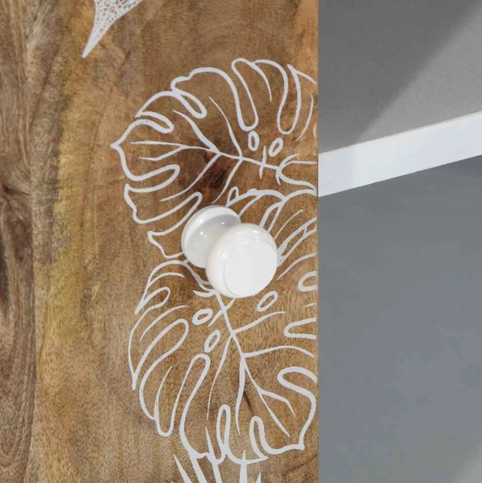 - Matériau : bois de manguier naturel avec écran de peinture blanche, bois d’ingénierie, métal