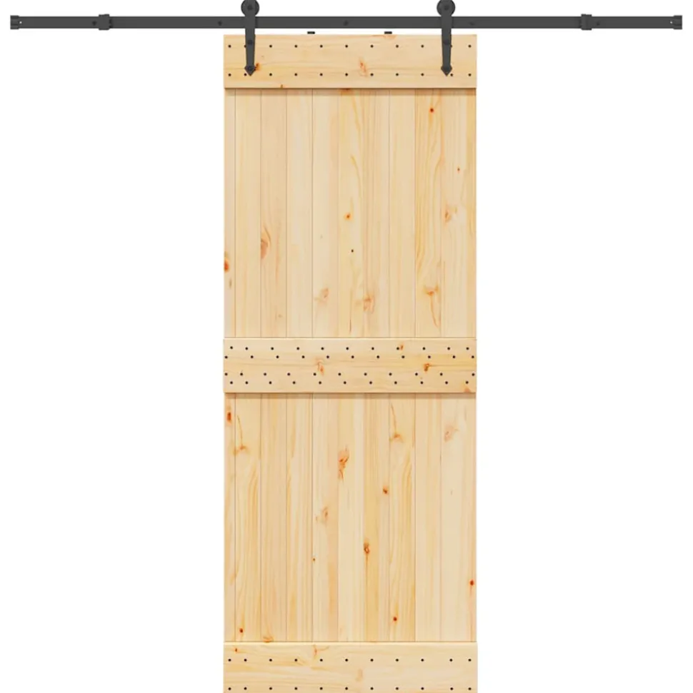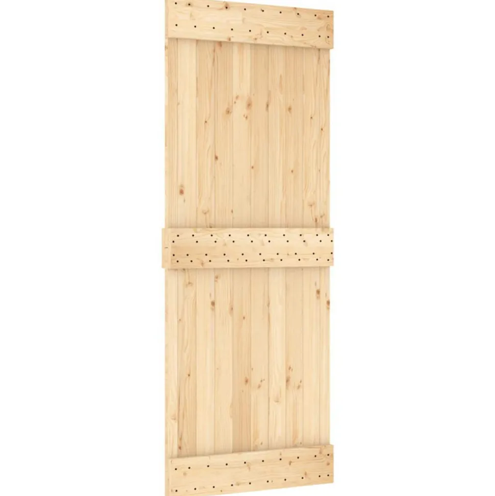 Cette porte coulissante en bois de pin massif est conçue pour enrichir l’entrée de votre maison et assurer une meilleure sécurité pour votre maison. Bois de pin massif : la porte intérieure est fabriquée en bois de pin massif. Le bois de pin solide est un beau matériau naturel. Le bois de pin a un grain droit et les n艙uds donnent au matériau son aspect caractéristique et rustique.Rails coulissants robustes : l’acier est un matériau exceptionnellement dur et résistant. Il offre robustesse et stabilité. Le revêtement en poudre sur l’acier crée une couche protectrice contre l’usure. Fabriqués en acier enduit de poudre, les rails coulissants sont robustes, durables et résistants.Glissement silencieux et en douceur : grâce aux roulements internes, vos porte coulissante intérieure glissera doucement et silencieusement. Des arrêts de porte sont également inclus pour empêcher le déraillement des rouleaux, tandis que les joints en caoutchouc amortiront la bosse des rouleaux et réduiront le bruit.Conception permettant de gagner de l’espace : cette porte coulissante en bois économise de l’espace et semble plus spacieuse. C’est le premier choix pour une conception de maison moderne simple et d’ambiance.Nombreuses applications : la porte de grange coulissante peut être installée aussi bien sur des murs en bois que sur des murs en béton. Elle est idéale pour une utilisation dans la chambre à coucher, la cuisine, la grange, le garage, etc.