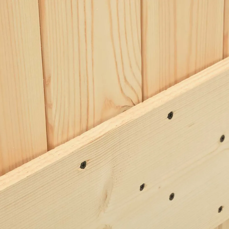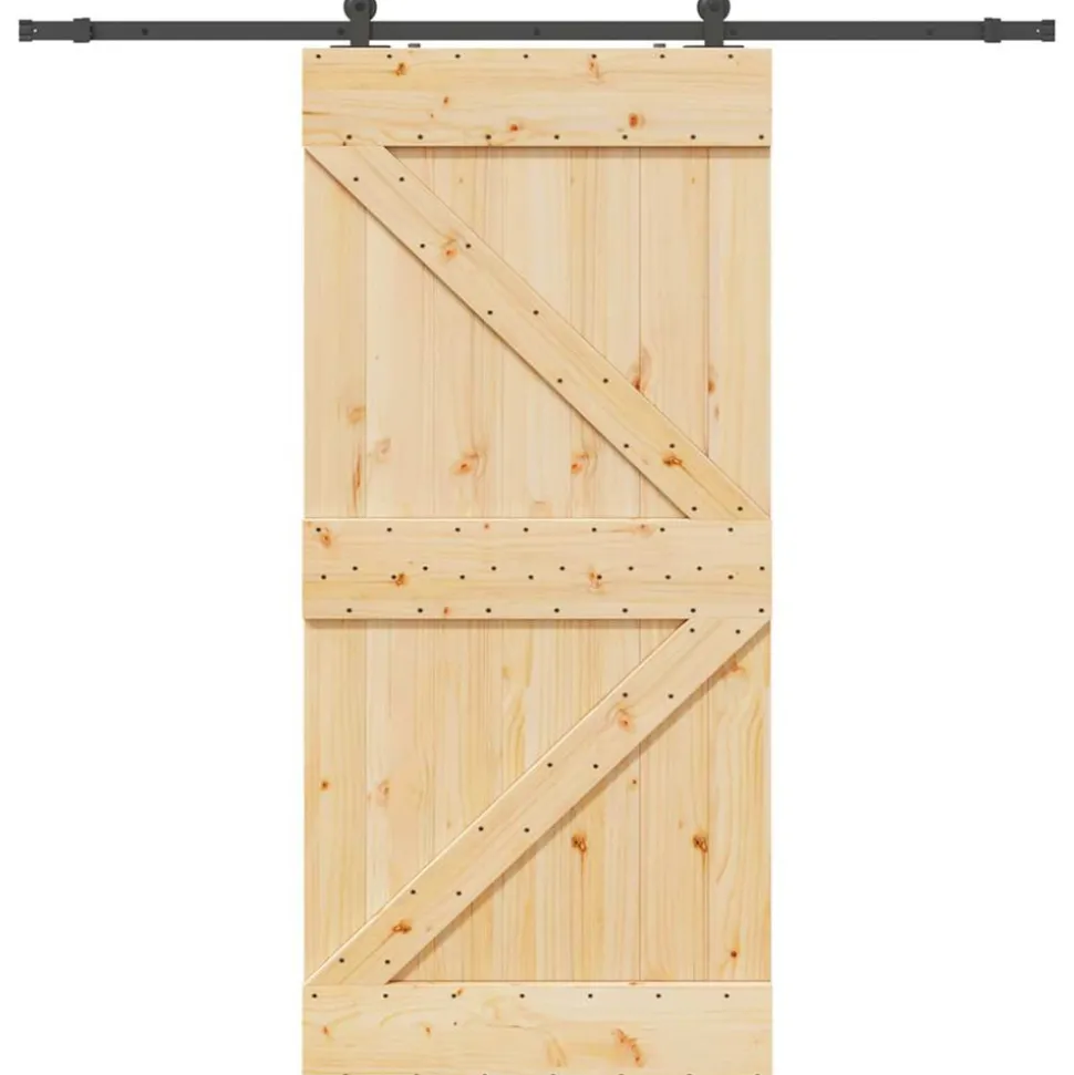 Cette porte coulissante en bois de pin massif est conçue pour enrichir l’entrée de votre maison et assurer une meilleure sécurité pour votre maison. Bois de pin massif : la porte intérieure est fabriquée en bois de pin massif. Le bois de pin solide est un beau matériau naturel. Le bois de pin a un grain droit et les n艙uds donnent au matériau son aspect caractéristique et rustique.Rails coulissants robustes : l’acier est un matériau exceptionnellement dur et résistant. Il offre robustesse et stabilité. Le revêtement en poudre sur l’acier crée une couche protectrice contre l’usure. Fabriqués en acier enduit de poudre, les rails coulissants sont robustes, durables et résistants.Glissement silencieux et en douceur : grâce aux roulements internes, vos porte coulissante intérieure glissera doucement et silencieusement. Des arrêts de porte sont également inclus pour empêcher le déraillement des rouleaux, tandis que les joints en caoutchouc amortiront la bosse des rouleaux et réduiront le bruit.Conception permettant de gagner de l’espace : cette porte coulissante en bois économise de l’espace et semble plus spacieuse. C’est le premier choix pour une conception de maison moderne simple et d’ambiance.Nombreuses applications : la porte de grange coulissante peut être installée aussi bien sur des murs en bois que sur des murs en béton. Elle est idéale pour une utilisation dans la chambre à coucher, la cuisine, la grange, le garage, etc.