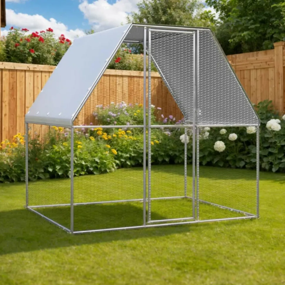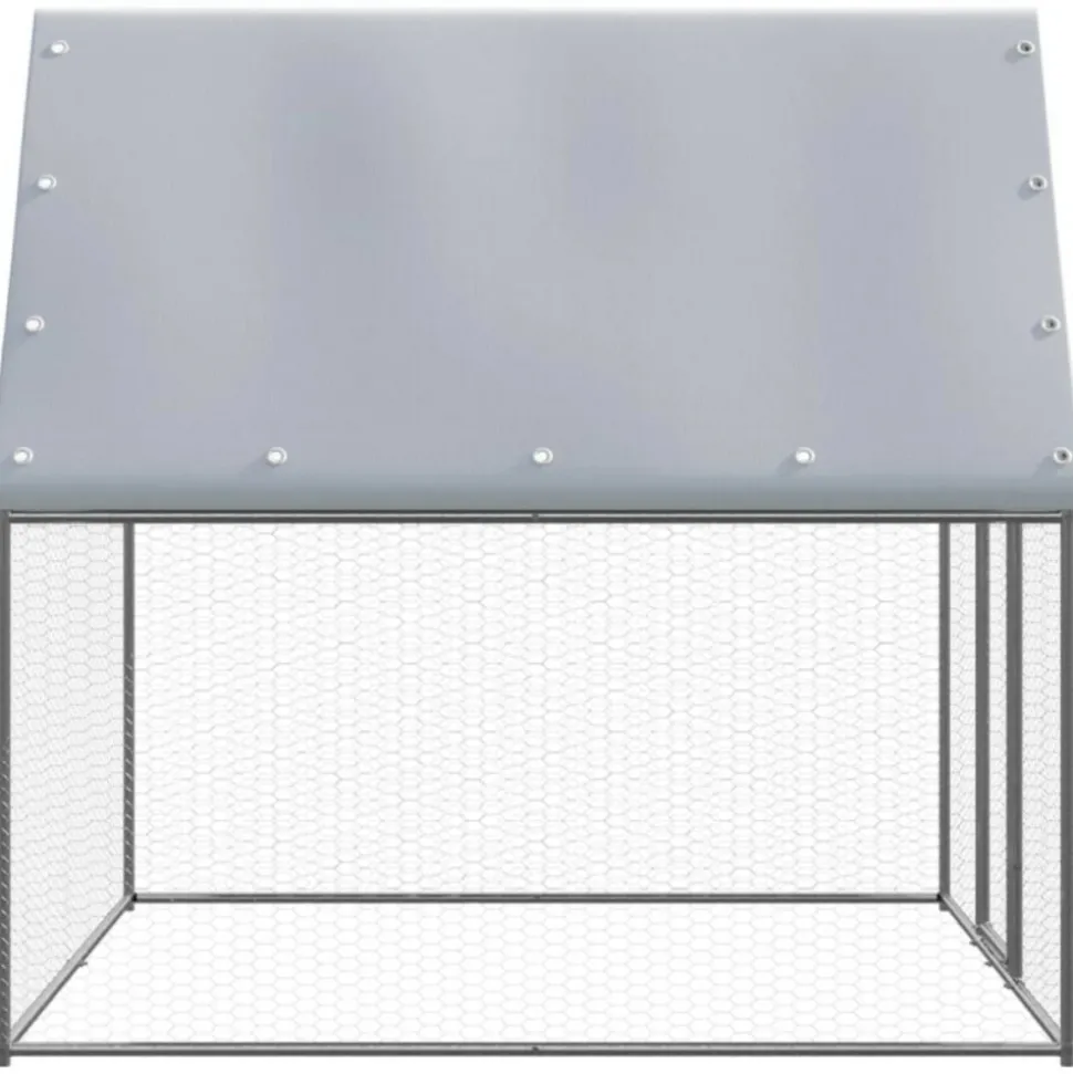 Ce poulailler pratique et spacieux est un choix parfait comme enclos d’extérieur pour le confort de vos poules, canards et autres petits animaux et les maintient à l’aise. Cadre durable et robuste : le poulailler est fabriqué en acier galvanisé. l’acier est un matériau exceptionnellement dur et solide. Il offre robustesse et stabilité. La galvanisation offre une meilleure protection contre la corrosion et est utile pour les produits qui seront utilisés à l’extérieur et dans des environnements difficiles.Toit résistant à l’eau : la cage à poulets est dotée d’un toit en polyéthylène résistant à l’eau et aux UV, ce qui la protège du soleil, de la pluie, de la neige et d’autres conditions météorologiques.Grande espace d’activité : la cage à poulets offre à vos poules un vaste espace d’activité pour se promener facilement. En outre, elle convient également à d’autres petits animaux tels que les oiseaux, les lapins, les canards, les oies, etc.Sécurité supplémentaire : la porte à charnière avec un système de verrouillage verrouillable du poulailler d’entrée assure une sécurité supplémentaire à vos poules. Couleur : argenté et grisMatériau : acier galvanisé, PE (polyéthylène)Dimensions : 2 x 2 x 2 m (l x P x H)Toit résistant à l’eauComprend une porte avec serrureAssemblage requis : ouiCouleur : argenté et grisMatériau : acier galvanisé, PE (polyéthylène)Dimensions : 2 x 2 x 2 m (l x P x H)Toit résistant à l’eauComprend une porte avec serrureAssemblage requis : oui