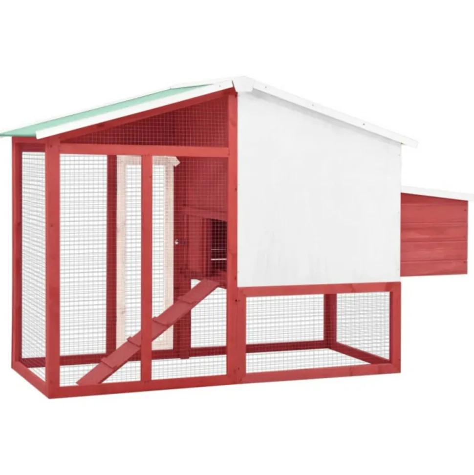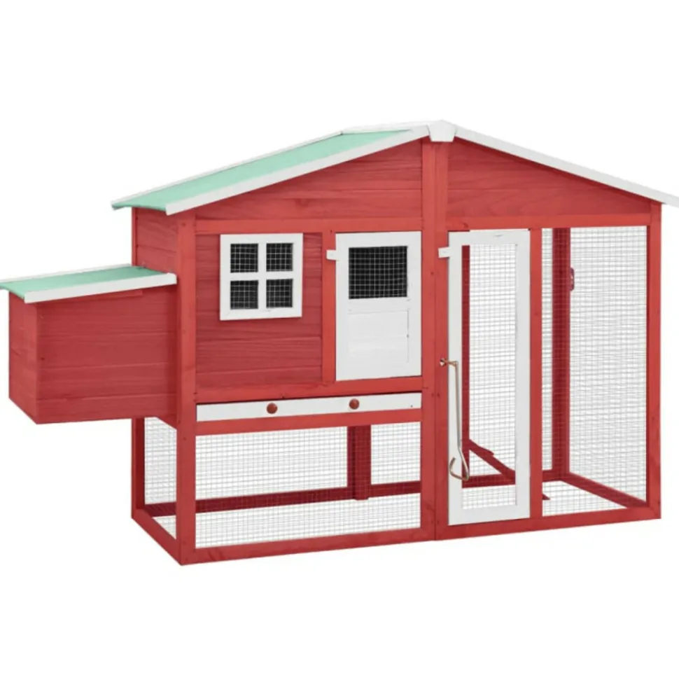 Ce poulailler en bois offre un endroit confortable pour l’élevage des petits animaux, en particulier les poulets pour se détendre. La cage à poulet dispose d’un design complet avec une maison, un nichoir et une très grande piste avec grillage en acier galvanisé pour garder un œil sur votre volaille. Elle assure également votre surveillance des poulets et leur permet d’obtenir assez d’air frais. Le poulailler est construit en bois de sapin massif, ce qui le rend durable. De plus, le toit inclinable est recouvert de tissu résistant à l’eau et empêche la pluie de pénétrer. La cage offre la zone de couchage parfaite. De plus, la rampe antidérapante mène du niveau inférieur au niveau supérieur, et le dessus coulissant facilite le nettoyage. Ce clapier à poules est parfait pour vos animaux de compagnie dans votre cour. Couleur : Rouge et blancMatériau : bois de pin massif, contreplaqué, acier galvaniséDimensions totales : 191 x 67 x 117 cm (l x P x H)Dimensions intérieures (sans nichoir) : 144 x 57 x 115 cm (l x P x H)Poids net : 24,7 kgToit recouvert d’un tissu résistant à l’eau (100 % polyester)Avec une rampe antidérapante pour faciliter l’accès au niveau supérieurUn bac coulissant pour un nettoyage facileConvient aux pouletsL’assemblage est requisCouleur : Rouge et blancMatériau : bois de pin massif, contreplaqué, acier galvaniséDimensions totales : 191 x 67 x 117 cm (l x P x H)Dimensions intérieures (sans nichoir) : 144 x 57 x 115 cm (l x P x H)Poids net : 24,7 kgToit recouvert d’un tissu résistant à l’eau (100 % polyester)Avec une rampe antidérapante pour faciliter l’accès au niveau supérieurUn bac coulissant pour un nettoyage facileConvient aux pouletsL’assemblage est requis