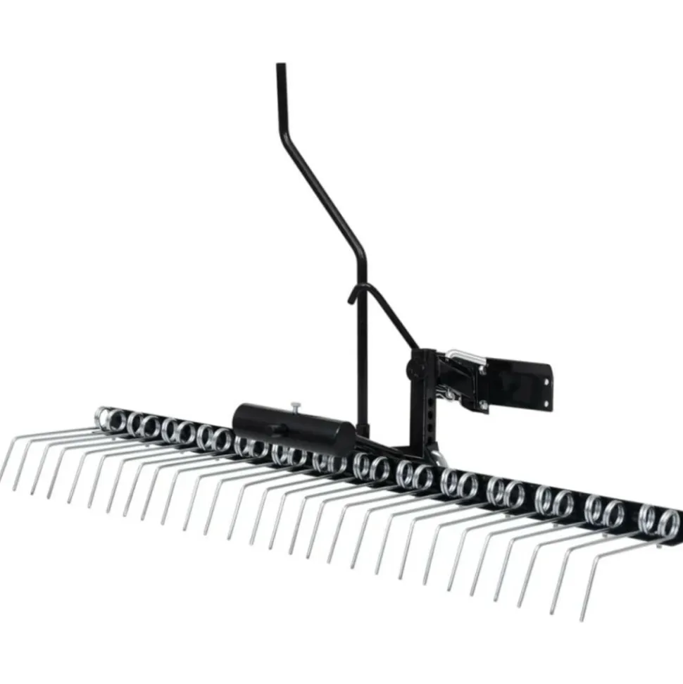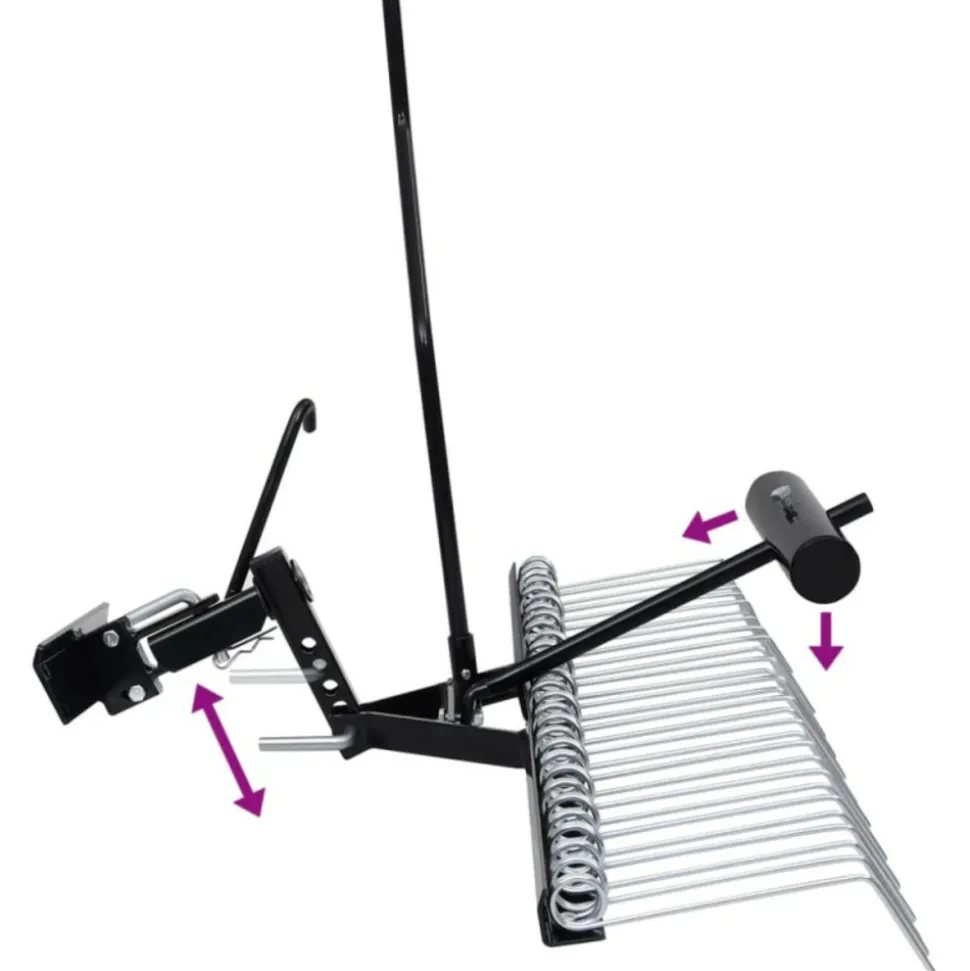 Le scarificateur pour tondeuse autoportée permet d’éliminer facilement la mousse et les mauvaises herbes, et de scarifier efficacement les grandes surfaces de gazon pour favoriser une croissance plus dense de l’herbe. Matériau durable : l’acier est un matériau exceptionnellement dur et solide. Il offre robustesse et stabilité. La galvanisation offre une meilleure protection contre la corrosion et est utile pour les produits qui seront utilisés à l’extérieur et dans des environnements difficiles.Élimination efficace de la mousse et du chaume : l’aérateur de pelouse déloge efficacement divers types de débris tels que les tiges, les déchets de coupe, les stolons, les racines et les feuilles non décomposées, ce qui en fait une option appropriée pour les grands jardins. Ce processus permet à l’air, à l’eau et aux engrais d’atteindre les racines, ce qui permet d’obtenir un gazon plus sain.Scarification rapide et efficace : avec ses 14 dents à ressort jumelées et durables et une largeur de scarification de 109 cm, le scarificateur de pelouse offre un moyen rapide et efficace de scarifier votre pelouse. Les dents à ressort sont traitées thermiquement pour une plus grande résistance, ce qui leur permet d’effectuer des travaux difficiles.Connexion facile : grâce au dispositif de couplage, le scarificateur peut être connecté facilement et en toute sécurité à la tondeuse autoportée ou au tracteur de pelouse. Couleur : noirMatériau : acier galvaniséDimensions totales : 109 x 57,5 x 67 cm (L x l x H)Largeur de fonctionnement : 109 cmDent en acier à ressort traité thermiquement de 5,14 mm14 ressorts jumelés en acierPoids : 11,7 kgL’assemblage est requisCouleur : noirMatériau : acier galvaniséDimensions totales : 109 x 57,5 x 67 cm (L x l x H)Largeur de fonctionnement : 109 cmDent en acier à ressort traité thermiquement de 5,14 mm14 ressorts jumelés en acierPoids : 11,7 kgL’assemblage est requis