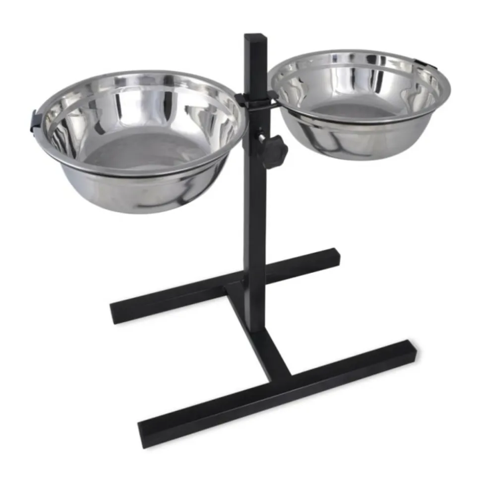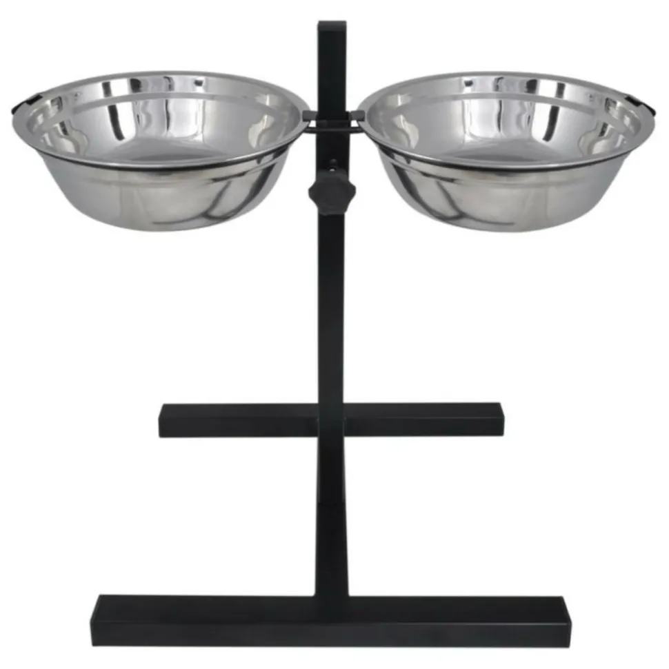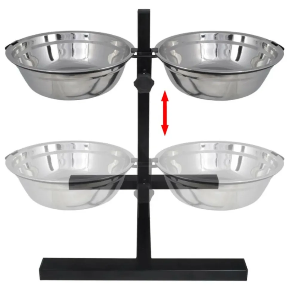 Ce support est facile à assembler qui est indispensable pour les chiens de différentes races ou les chiens en période de croissance. Deux bols en acier inoxydable résistant à la rouille s’insèrent dans les deux anneaux et peuvent être bloqués à l’aide du système de fixation.Le support robuste est fait en tube d’acier avec revêtement en poudre. La hauteur du support est réglable à l’aide d’une vis de blocage. Les bols peuvent être enlevés pour nettoyer! Matériau des bols: Acier inoxydable Taille des bols: 28 x 10 cm (Diamètre x Profondeur) Capacité du bol: 4,1 L Large base en forme de H: 50 x 29 cm (L x W) Hauteur réglable: 6 – 48 cm Quantité de bols: 2 pcs Hauteur réglable Matériau du support: tube d’acier + revêtement laquéMatériau des bols: Acier inoxydable Taille des bols: 28 x 10 cm (Diamètre x Profondeur) Capacité du bol: 4,1 L Large base en forme de H: 50 x 29 cm (L x W) Hauteur réglable: 6 – 48 cm Quantité de bols: 2 pcs Hauteur réglable Matériau du support: tube d’acier + revêtement laqué
