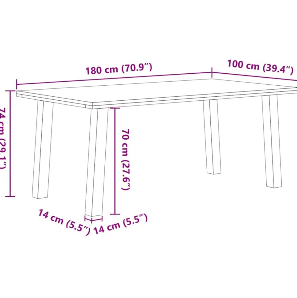 Faites de chaque repas un moment inoubliable en vous réunissant chaque jour avec votre famille ou vos amis autour de cette table à manger en bois !Matériau robuste et durable : le bois de chêne massif est connu pour sa solidité, sa durabilité et la beauté de son grain, ce qui en fait un matériau idéal pour les meubles de longue durée. Sa résistance naturelle aux insectes et aux champignons permet aux meubles en chêne de rester attrayants et fonctionnels pendant des années.Grande table : cette table mesure 180 x 100 cm, ce qui permet de disposer d’un grand espace pour s’asseoir et d’en faire la pièce maîtresse de votre salle à manger.Entretien facile : grâce à sa surface lisse, le plan de travail est facile à nettoyer avec un chiffon humide et nécessite moins d’entretien.Charme unique : les nœuds, les fissures et les variations de couleur étant des caractéristiques naturelles du bois de chêne, chaque pièce de ce produit possède son charme distinctif. Reportez-vous aux images pour des exemples des variations auxquelles vous pouvez vous attendre.Bon à savoir :Chaque article est unique, avec des variations de couleurs et de grains. La livraison est aléatoire, ce qui garantit l’exclusivité et l’individualité de votre produit.Les nœuds et les petits défauts sont comblés avec un matériau de remplissage noir pour donner une surface de table agréable et lisse. Reportez-vous aux images pour des exemples.Le plateau de la table présente une épaisseur de 4 cm le long des bords pour une apparence robuste et une épaisseur de 2 cm au centre pour réduire la consommation de bois et le poids total.Veuillez percer des trous dans la partie centrale, pas le long des bords de la planche.Veillez à ne pas dépasser la profondeur de perçage maximale de 15 mm pour éviter d’endommager le plateau de table, car l’épaisseur du panneau est de 20 mm.Nous recommandons d’utiliser un tournevis plutôt qu’une perceuse électrique pour éviter que le bois ne se fissure lors de la fixation des pieds.