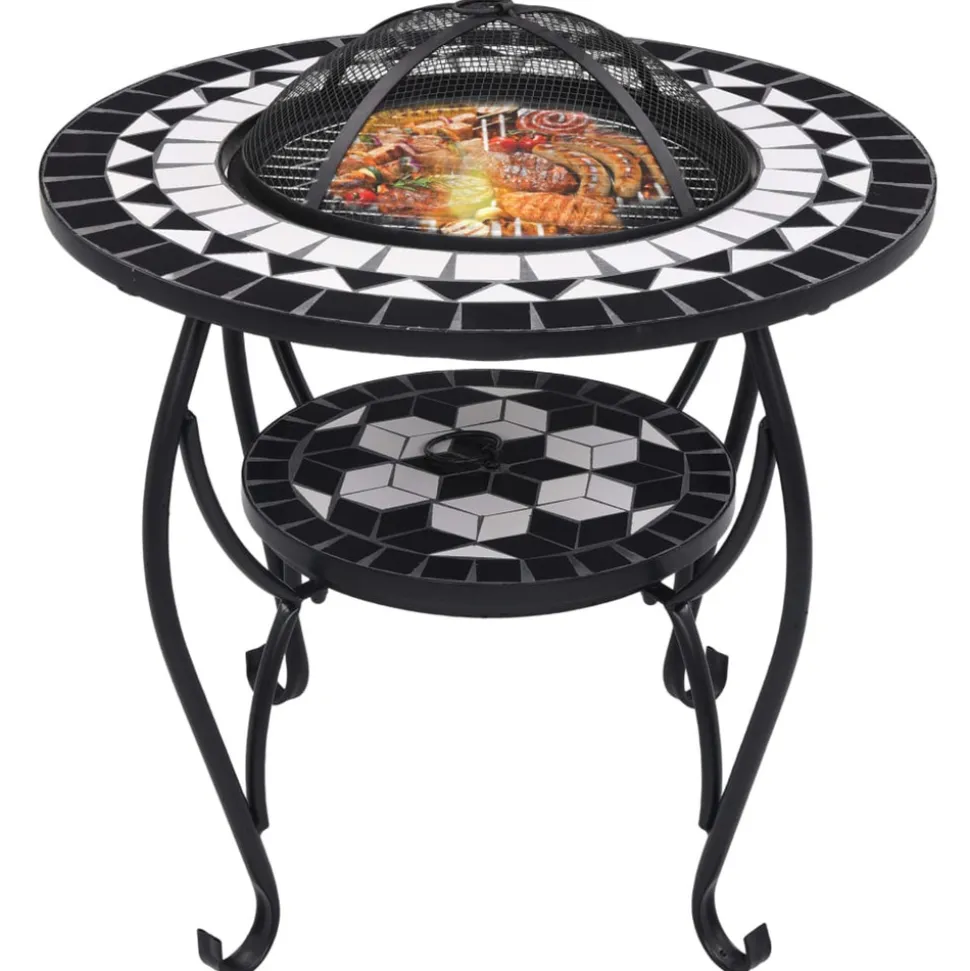 Ce foyer fera un atout décoratif et ajoutera à l’atmosphère de votre jardin ou décoration de patio, tout en vous réchauffant lorsqu’il ferra plus froid pendant la soirée. Fabriqué en acier, le bol de foyer est excellent pour l’absorption et la radiation de la chaleur. Il peut être utilisé pour brûler du bois sec, des bûches ou du charbon de bois. Le foyer est supporté par un support à quatre pattes. Le grillage de sécurité inclus vous permet de surveiller le feu qui brûle, et entoure le feu pour la sécurité ainsi que pour empêcher les étincelles et les débris de s’envoler. L’outil de tisonnier peut être utilisé pour retirer le couvercle du grillage et pour réarranger les bûches ou le charbon. De plus, la table de foyer peut également être utilisée comme barbecue. Sa surface ronde en céramique offre un endroit parfait pour les boissons et les grillades. Veuillez noter que ce produit ne convient pas pour être laissé à l’extérieur dans des conditions froides.