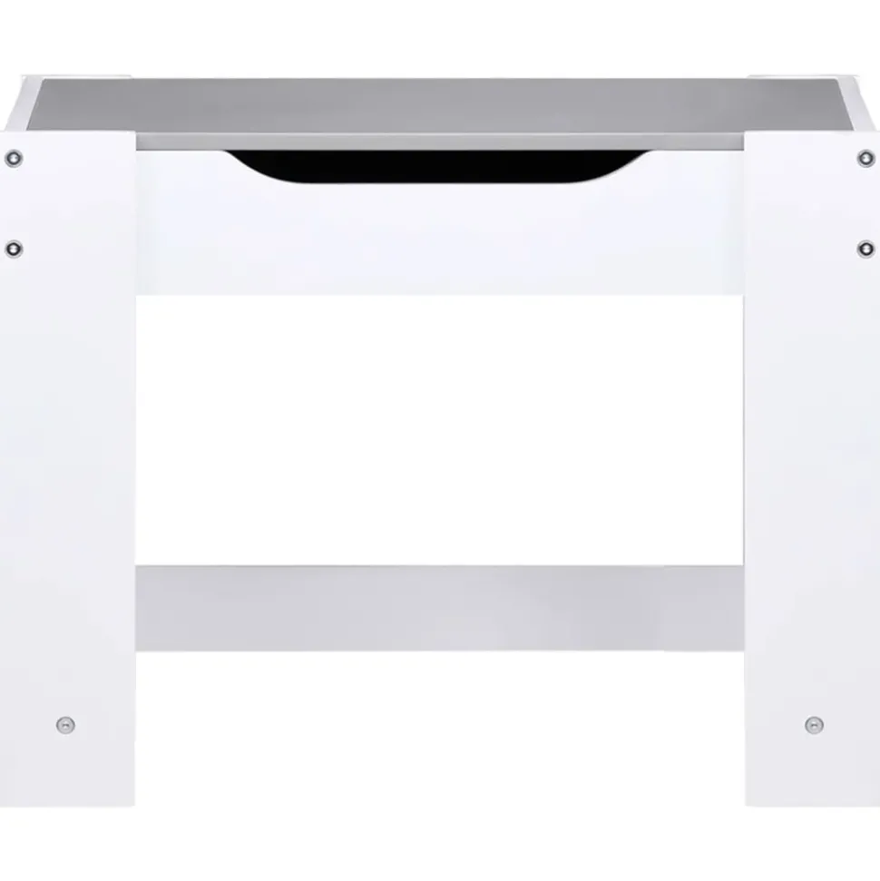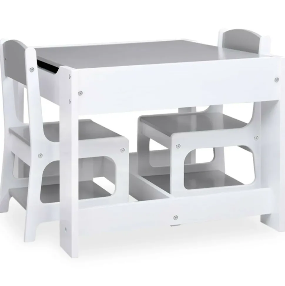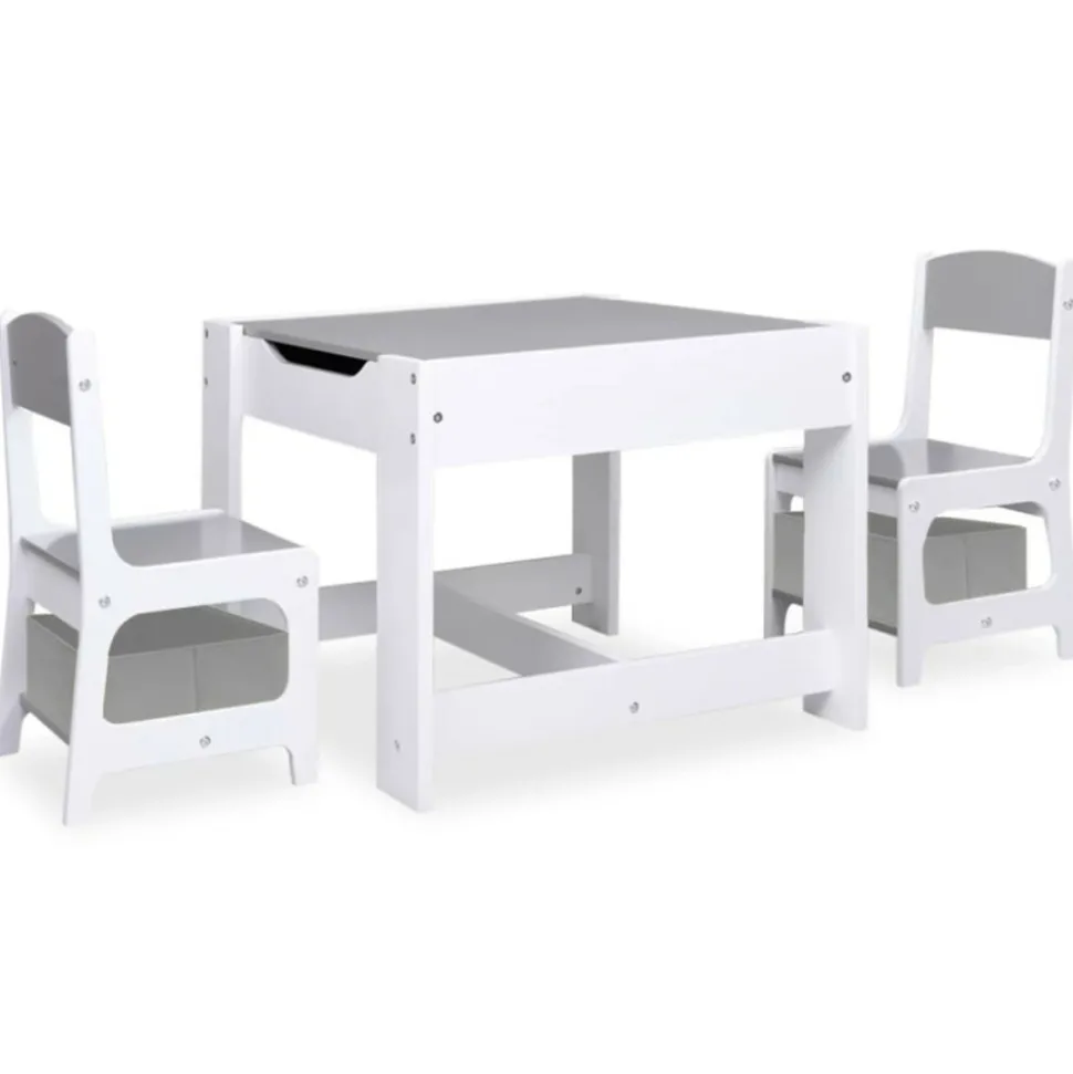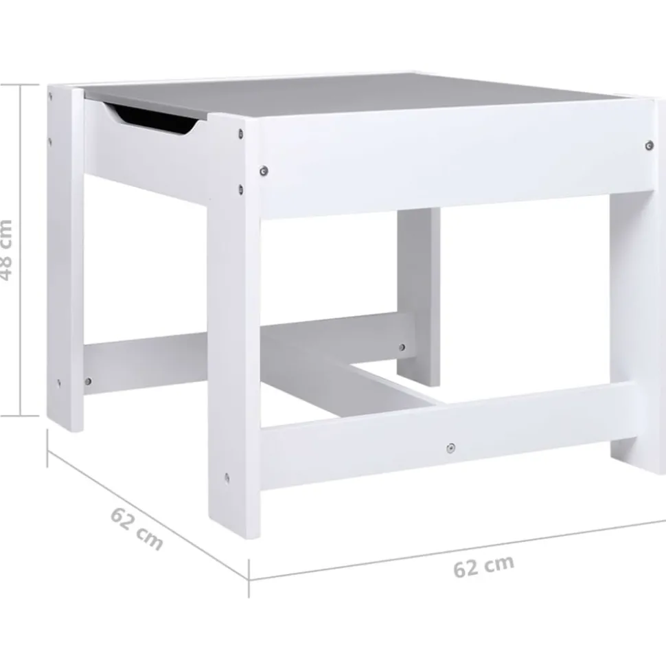 Cet ensemble de table et de chaises polyvalent pour enfants, au design attrayant, constitue un excellent endroit pour que vos enfants puissent jouer, bricoler, faire des puzzles ou lire. Cet ensemble est composé de panneaux MDF aux coins légèrement arrondis, qui sont robustes et protègent les enfants contre les blessures causées par les coins et les bords tranchants. La table multifonctionnelle a un dessus de table amovible double face. Un côté est un tableau blanc et l’autre côté est un tableau noir. Comprenant une aire de jeu encastrée et servant de compartiment de rangement, elle est parfait pour que vos enfants prennent leurs repas, jouent et rangent des jouets, et aident à empêcher les jouets, les boissons et les collations de se renverser sur la table. Couleur : blancMatériau : MDFDimensions de la table basse : 62 x 62 x 48 cm (L x l x H)Dimensions de la chaise : 28,5 x 30,5 x 53 cm (l x P x H)Comprend un tableau noirL’assemblage est requisRemarque : les boîtes de rangement sous les sièges ne sont pas incluses dans la livraisonLa livraison contient :1 x table2 x chaiseAVERTISSEMENT: Ne convient pas aux enfants de moins de 36 mois. Avertissement. NE PAS placer ce produit près d’une fenêtre, car l’enfant pourrait s’en servir comme marchepied et tomber par la fenêtre, et les cordons des stores ou des rideaux pourraient étrangler l’enfant. Soyez conscient du risque de feux ouverts et d’autres sources de forte chaleur à proximité du produit.Couleur : blancMatériau : MDFDimensions de la table basse : 62 x 62 x 48 cm (L x l x H)Dimensions de la chaise : 28,5 x 30,5 x 53 cm (l x P x H)Comprend un tableau noirL’assemblage est requisRemarque : les boîtes de rangement sous les sièges ne sont pas incluses dans la livraisonLa livraison contient :1 x table2 x chaiseAVERTISSEMENT: Ne convient pas aux enfants de moins de 36 mois.