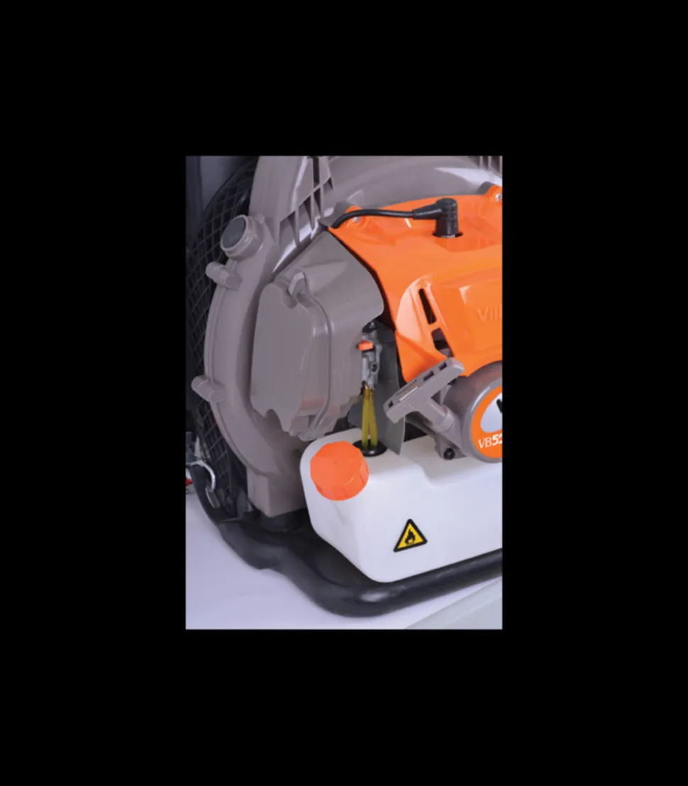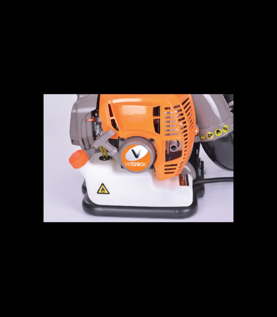 Souffleur de feuilles à dos Villager VB5290 E à moteur thermique 2 temps de 51,7 cm3 d’une puissance de 2,04 cv.