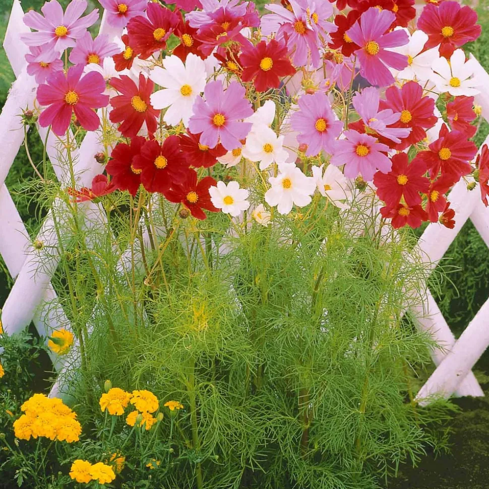 - Le premier sachet contient 1,5 grammes de graines de Cosmos ‘Sensation’, un fleur aux pétales rouges et blancs qui donne un bel effet de contraste dans le jardin.