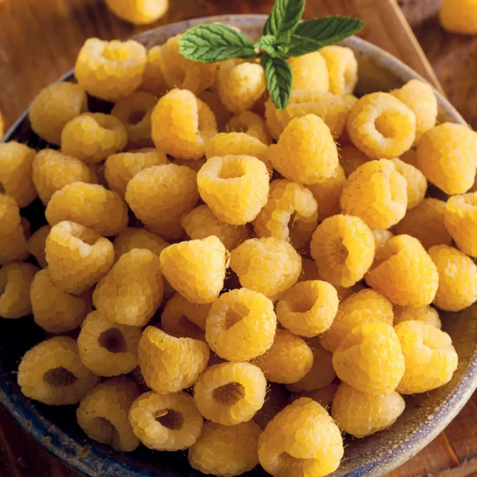 Les framboisiers remontants Fallgold, joyaux des arbres fruitiers, émerveillent par leurs fruits jaune doré, débordants de douceur. Appartenant à la famille des Rosaceae, ils évoquent la sérénité des forêts avec leur goût sucré et par leur capacité à offrir deux récoltes abondantes par an. Plantez-les dans un endroit ensoleillé avec un sol riche, et appréciez leur fructification généreuse tout en admirant leur resilience face aux climats variés. Véritables délices sucrés, ces framboises améliorent chaque dessert et assurent une explosion de saveurs lors de chaque bouchée.