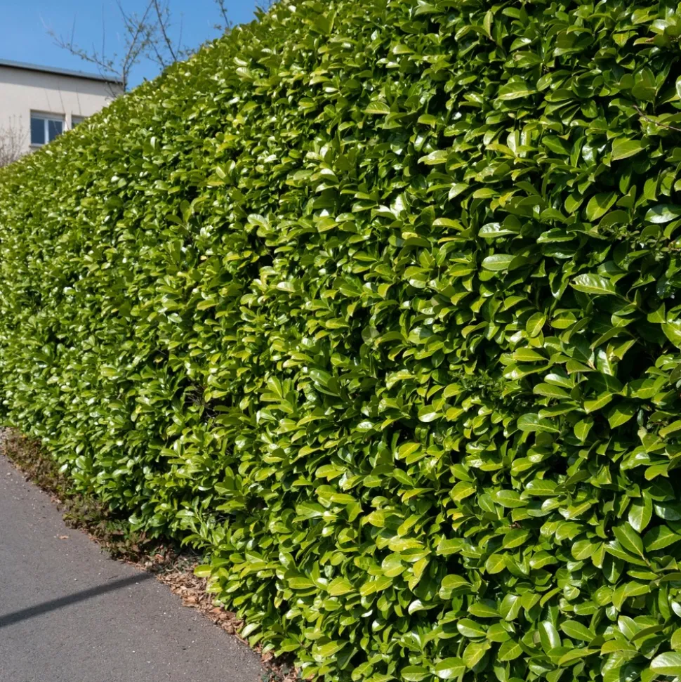 Dans une haie, le laurier-cerise offre un excellent contraste avec des plantes au feuillage plus léger ou coloré, ce qui enrichit le design du jardin tout en assurant une bonne occultation. Il est également compatible avec des plantes vivaces hautes et des graminées qui complètent son port rigide et son feuillage dense.