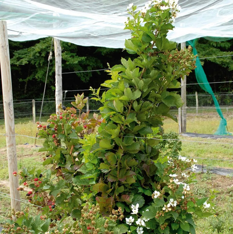 Planté en plein soleil, le mûrier Reuben est une variété extrêmement productive, avec des récoltes allant jusqu’à 3 kg de fruits savoureux par pied dès la première saison. Cet arbuste fruitier est aussi le premier mûrier remontant. De fin juin à fin juillet, il fructifie sur les tiges de l’année précédente, puis d’août à novembre, il fructifie sur les tiges de l’année, soit jusqu’à 5 mois de récolte ! Le mûrier Reuben est une plante grimpante peu épineuse ce qui évite toute mauvaise surprise lors des récoltes. Ses rameaux qui s’allongent sont parfaits pour couvrir une structure de plusieurs mètres au jardin.