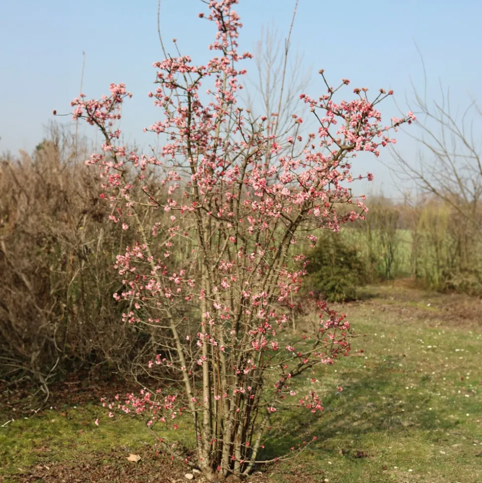 L’arbuste qu’est la Viorne rose transforme les jardins en véritables œuvres d’art vivantes. Ses feuilles vibrant en un dégradé automnal, du vert profond au rouge incandescent, apportent une texture visuelle captivante. Au cœur de l’hiver, ses petites fleurs blanc roses émanent un parfum enivrant, créant un contraste saisissant sur les rameaux dénudés. Nichée à la lisière de zones ensoleillées et ombragées, elle résiste aux intempéries avec élégance. La Viorne rose captive par sa beauté changeante, illustrant la subtile magie de la nature.
