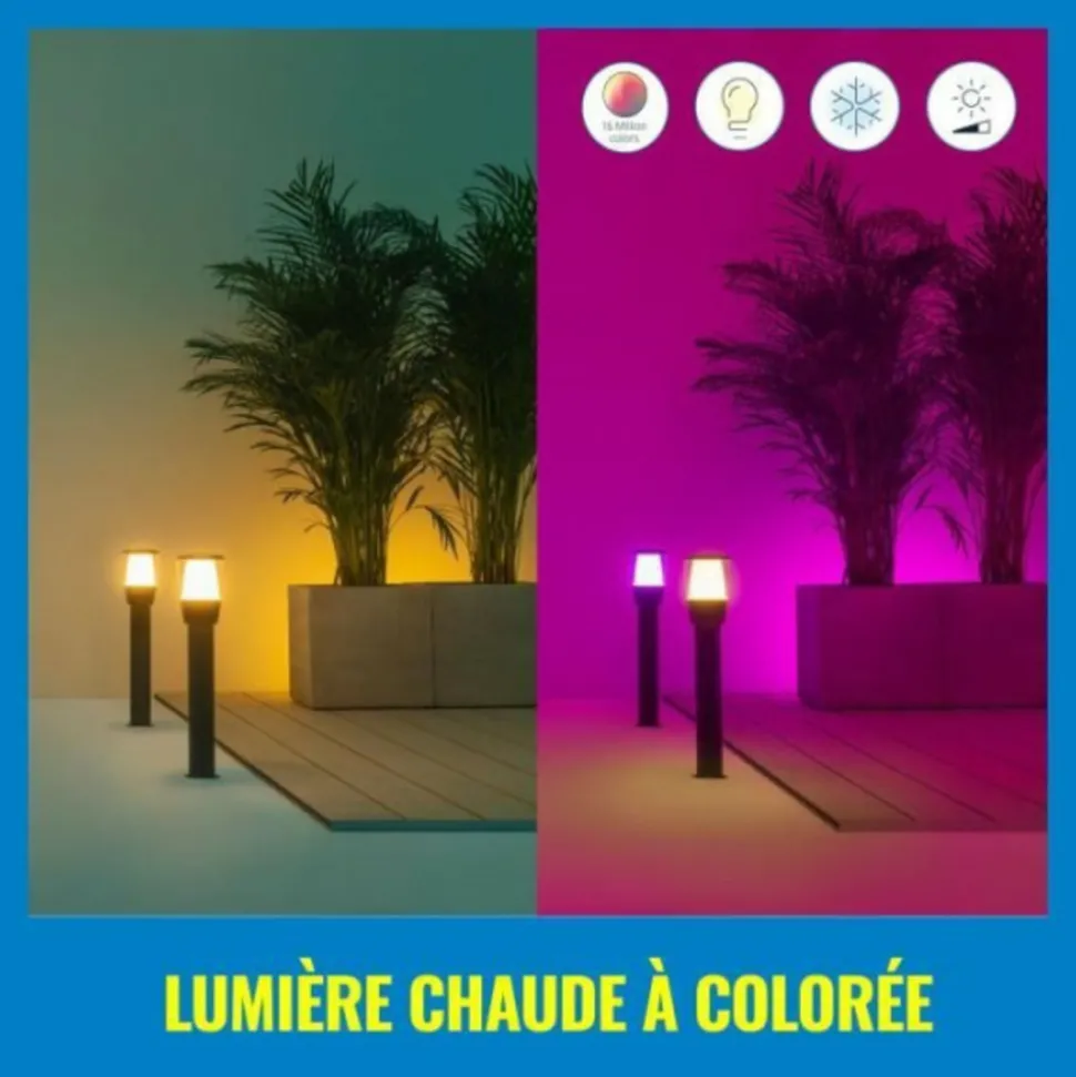 La borne d’extension extérieure WIZ ELPAS est une solution Wi-Fi basse tension pour votre jardin. Elle fonctionne avec Alexa et Google Assistant et dispose d’un détecteur de mouvement. Sa structure en aluminium noir mesure H 52 x D 11 cm et integre des LED. Ce kit d’extension borne est idéal pour un usage extérieur contemporain et design.