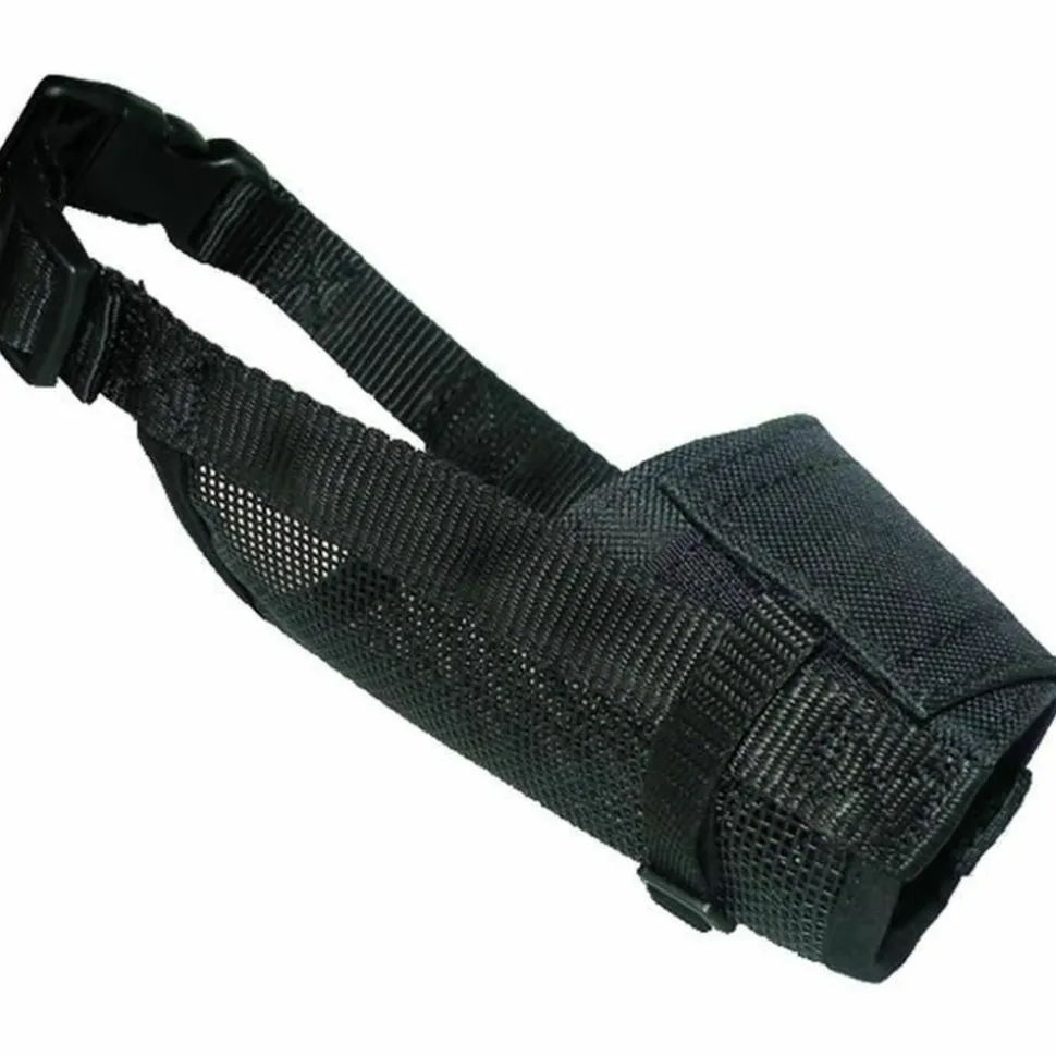 Museliere noire pour grand chien : évite au chien d’aboyer, mordre, mâcher, ronger, lui permet de continuer a boire, haleter. Partie en filet : respirant, agréable. Tour de cou et museau réglable : pratique, confortable. Facile a mettre, a ranger, légere, lavable en machine. Idéale pour des courtes durées.
