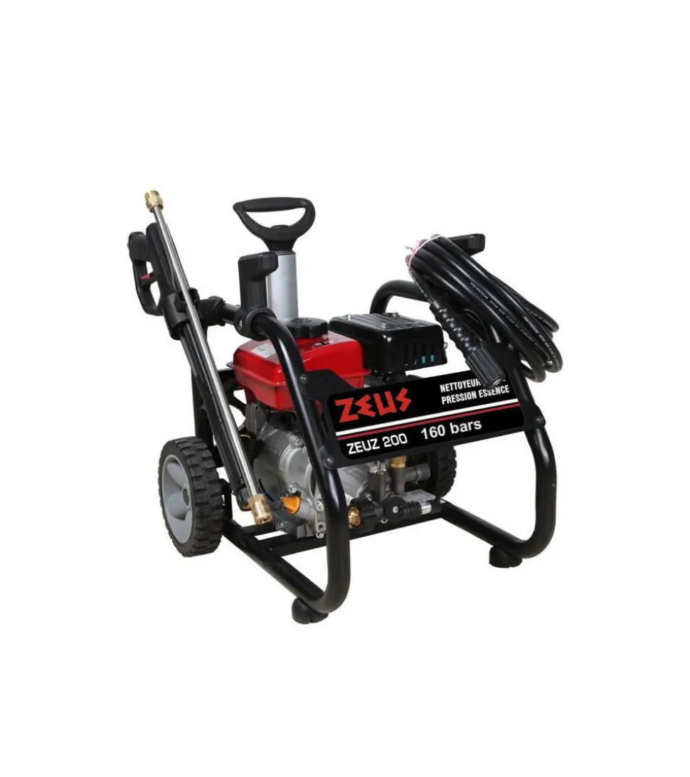 Nettoyeur haute pression moteur thermique livré avec rotabuse procurant une pression de 160 Bars – pression maxi avec rotabuse: 160 bars – pression maxi sans rotabuse: 124 bars – Pression continue avec rotabuse: 120 bars – Pression continue sans rotabuse: 90 bars – Débit Maxi 450 l/h-7,5 L/min – pompe Axiale aluminium – pistons Inox – Type de moteur 4 temps Refroidi air – Carburant: Essence SP95/98 – Puissance moteur