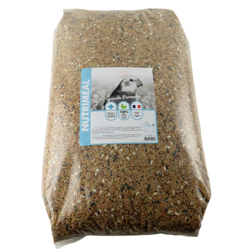 - Composition : Millet 50% (millet jaune, millet rouge, millet blanc), Gruau d’avoine, graines d’alpiste, graines de tournesol, blé, Graines de cardi (carthame), graines de colza, graines de sarrasin, graines de lin, Riz paddy, arachides décortiquées, graines de niger,