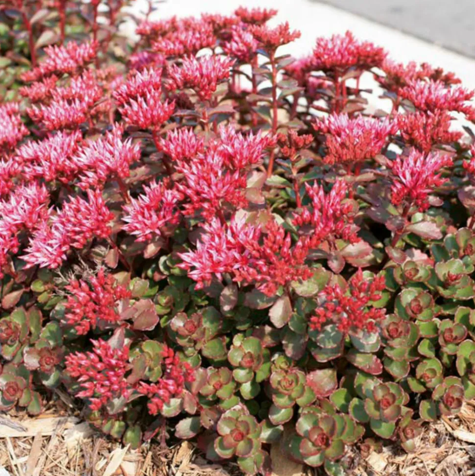 L’Orpin spurium ‘Fuldaglut’, également connu sous le nom de Sedum spurium ‘Fuldaglut’, est une séduisante plante succulente vivace qui arbore un feuillage dense et étendu. Ses feuilles sont d’un captivant bronze pourpré, elles sont charnues, rondes et affichent une bordure fortement dentée, qui crée un effet texturé très esthétique.La floraison de cette plante a lieu de juillet à septembre, période durant laquelle elle se pare de magnifiques fleurs d’un rose rouge éclatant. Ces fleurs ne sont pas seulement un régal pour les yeux, mais attirent également une myriade de pollinisateurs, comme les papillons et les abeilles, contribuant ainsi à la biodiversité de votre jardin ou de votre espace extérieur.L’Orpin ‘Fuldaglut’ est particulièrement adapté pour les jardins ou les balcons car il aime être exposé en plein soleil et prospère dans un sol neutre à calcaire bien drainé. Il est également résistant et peut tolérer des conditions difficiles telles que la sécheresse, le vent maritime, et même la pollution atmosphérique, ce qui en fait un choix idéal pour les environnements urbains.Implémenter l’Orpin spurium ‘Fuldaglut’ dans votre maison ou jardin n’est pas seulement un choix d’aménagement paysager judicieux pour sa beauté et sa facilité d’entretien, mais c’est également une approche éco-responsable qui favorise la présence d’insectes pollinisateurs essentiels pour l’écosystème. Ajoutez cette plante remarquable à votre espace pour une touche de couleur durable et un soutien à la faune locale!