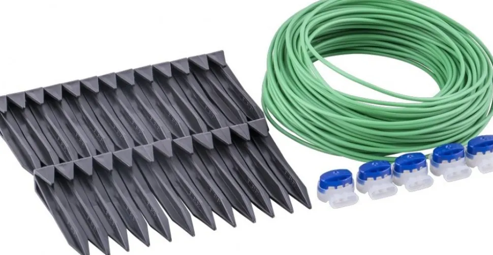 ce jeu d’accessoires permet la réparation de câbles périphériques endommagés et l’agrandissement de la zone de tonte de tondeuses robot.