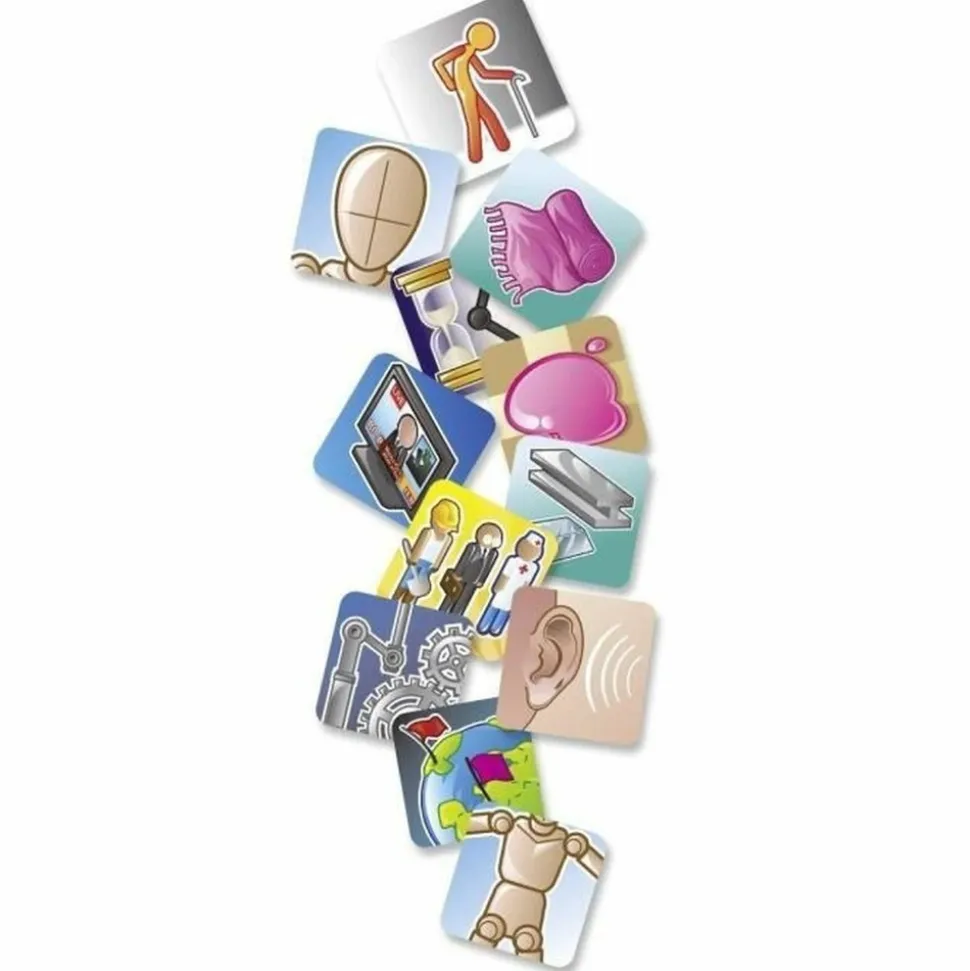 En équipe, faites deviner des mots aux autres joueurs en plaçant des pions sur différentes icônes du plateau. Grâce aux nombreuses icônes et aux possibilités offertes par leurs interactions, il existe plusieurs manieres de faire deviner chaque mot. Un jeu de communication et d’ambiance pour 4 joueurs ou plus, à partir de 10 ans, d’une durée de 40 minutes.
