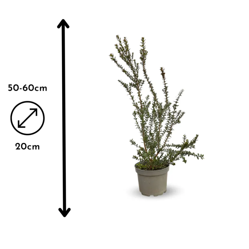 À la réception, votre Myrte Tarentine mesurera entre 50 et 60 cm, soigneusement présentée dans un pot de 20 cm de diamètre. Son feuillage compact et persistant, ainsi que sa floraison raffinée, en font un arbuste idéal pour structurer et embellir tout type de jardin ou d’espace extérieur. Apportez une touche méditerranéenne et parfumée à votre environnement avec cette plante facile à entretenir et élégante.