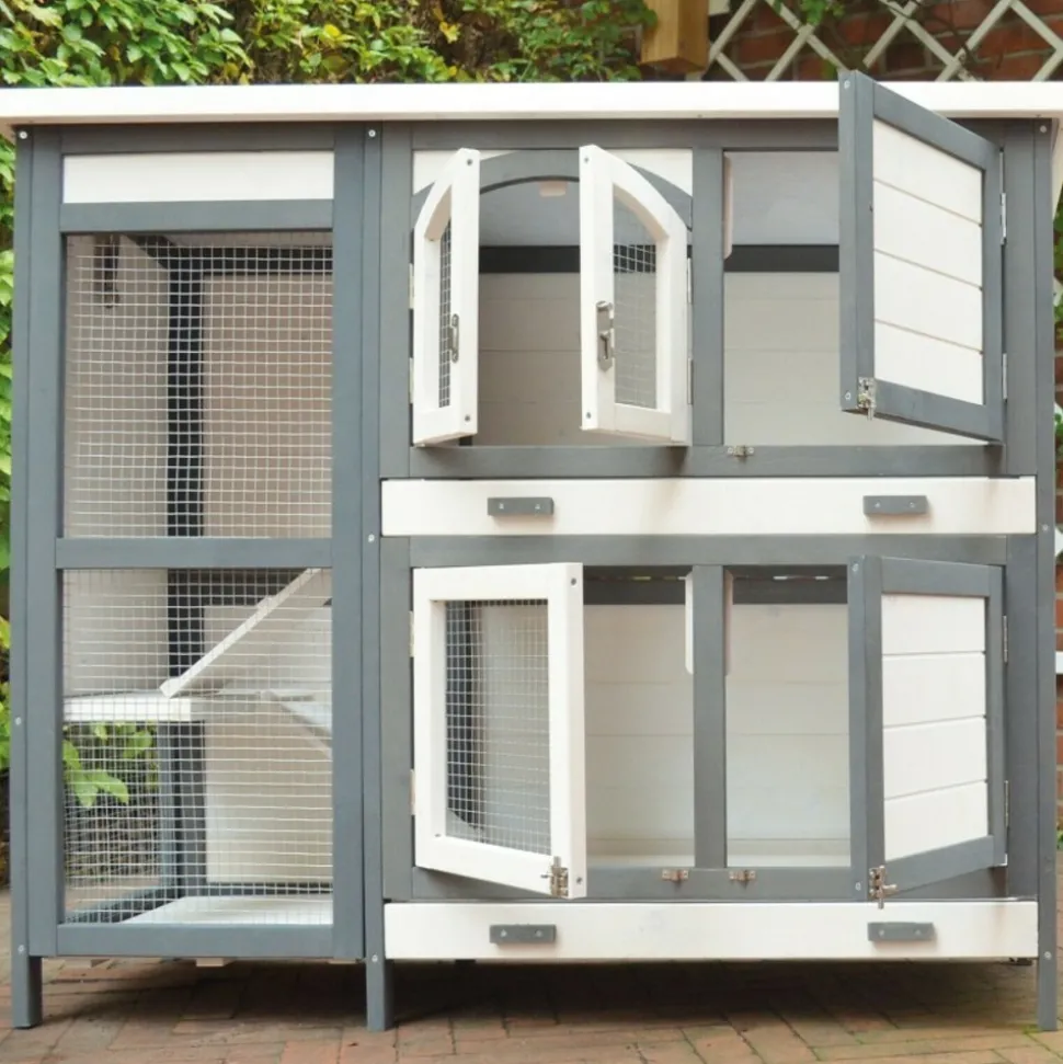 Le bois est un matériau naturel, si l’emplacement de l’enclos et son entretien ne sont pas adaptés, la durée de vie de l’enclos sera moins longue.Les lapins peuvent tout grignoter, les dents veulent être éraflées. Nous vous conseillons de leur offrir des