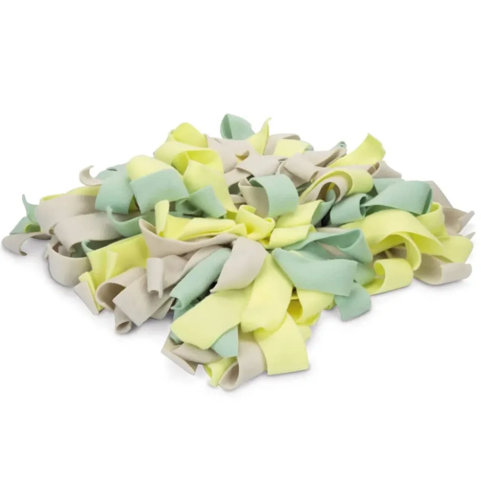 Le tapis à renifler pour chiot SNIFFY de Beeztees donne à votre chiot beaucoup de défis. Ce tapis à renifler peut être utilisé pour cacher des biscuits ou d’autres friandises. Comme il y a beaucoup de ficelles, votre chiot devra faire beaucoup d’efforts pour trouver les collations. Ce tapis se compose de toutes les ficelles de différentes couleurs, courtes et longues. Parce que le tapis est fait de tissu de jogging, il est agréable et doux pour le nez de votre chiot. Avec ce tapis à renifler, vous pouvez jouer avec votre chiot, ce qui renforce également le lien entre vous et votre chien. Attention : Veuillez vous assurer que votre chiot ne mord ou ne mâche pas le tapis.