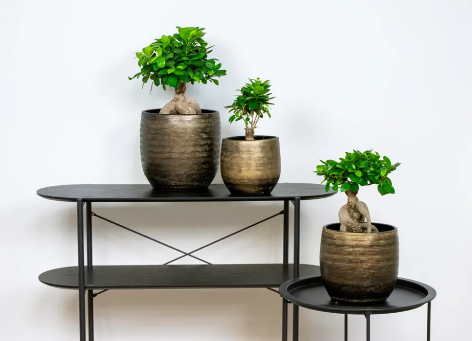 Le Ficus ‘Ginseng’ est le bonsaï parfait pour tous les amateurs de bonsaï débutants. Ce Ficus est l’une des plus petites espèces de ficus et s’intègre parfaitement dans n’importe quel intérieur. Au fil du temps, ce bonsaï développera des racines aériennes. Ces racines épaisses et frappantes sont en partie surélevées au-dessus du sol, créant un ensemble solide. Il peut résister à la taille, vous pouvez donc faire preuve de créativité pour lui donner une forme unique.Caractéristiques- Livré par pièce- La hauteur de livraison de cette plante est de 25-35 cm (mesurée du bas du pot de culture au sommet de la plante)- Livré en pot de culture ⌀12 cm- Facilité d’entretienSe soucier- Eau : Faible besoin en eau : été : 1/3 d’eau 1x toutes les 2 semaines + hiver : 1/3 d’eau 1x toutes les 8 à 12 semaines.- Position : Besoin d’ombre partielle mais ne tolère pas la lumière directe du soleil ? Ensuite, nous recommandons de placer le produit à environ +/- 2 à 3 mètres de la fenêtre, à condition que la fenêtre soit située du côté nord (nécessite 3 à 5 heures d’ensoleillement par jour).- Entretien : Je suis un cultivateur d’entretien facile. Ne m’arrosez pas trop et évitez mes racines – pour qu’elles ne pourrissent pas.Comment expédions-nousGrâce à notre technologie d’emballage intelligente, vos plantes restent en place et arrivent à destination sans dommage. Nous utilisons des emballages spécialement conçus pour les plantes. De cette façon, ils reçoivent de la lumière le plus longtemps possible et les racines, les feuilles et les fleurs de la plante restent protégées pendant leur voyage du producteur à vous.Chaque plante est unique. Les différentes conditions de croissance peuvent conduire à un résultat différent de celui montré sur la photo. Par conséquent, avant d’acheter, vérifiez attentivement si ces plantes conviennent à votre maison ou à votre jardin.